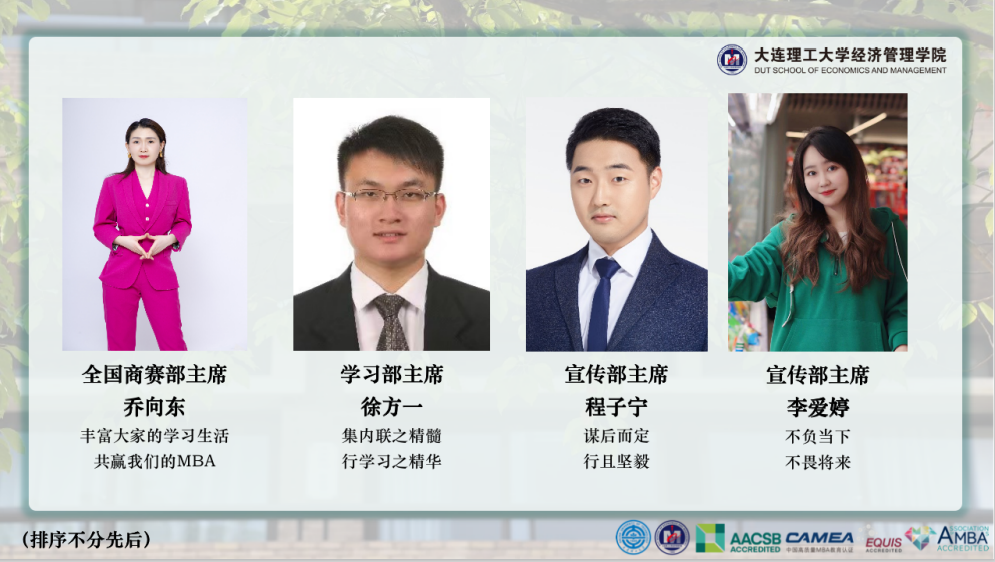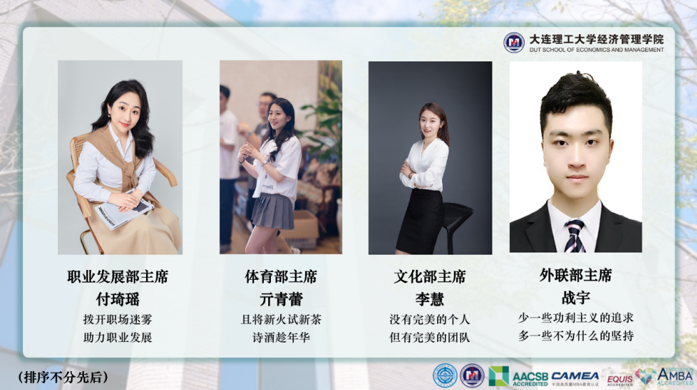 至此,大连理工大学经济管理学院第二十届MBA联合会换届仪式圆满成功。让我们祝愿大连理工大学第二十届MBA联合会初心不改,守望相助,踔厉奋发,逐光而行!