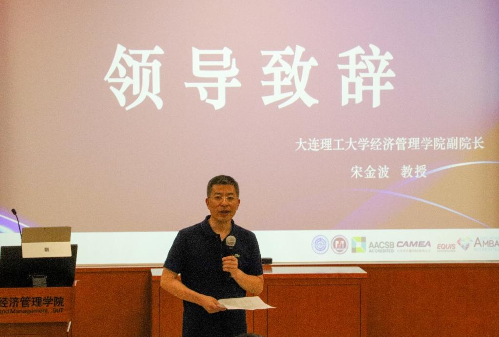 新一届联合会工作汇报后,大连理工大学经济管理学院副院长,MBA/EMBA教育中心主任宋金波教授致辞。他肯定了第十九届MBA联合会在过去一年为学院作出的贡献。尤其是在疫情影响之下,依然为MBA学生做了许多务实的工作,给学院留下了深刻的印象。对新一届联合会提出新的要求,希望新一届联合会秉承上届优良传统,遵循学校工作规律,配合学院完成各项工作,不断进行创新。同时也希望加强不同地区和学校之间的交流,支持跨地域联合,切实将学校、学院和学生的资源紧密整合起来。最后宋院长表示,无论是在校生还是毕业后的校友,大工永远是我们的家,我们同心同向,共同前行。