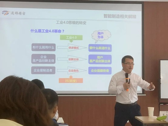 带着参访的余温,伴着傍晚的凉风,结合参访实践,洪勇老师深入浅出的讲解,很快激发了同学们的学习热情。同学们不时发问和讨论,对企业内部如何进行商业模式的选择,都有了跟以往不同的了解。第二天,为了让同学们更加了解和为学习打下基础,洪勇老师又请来了苏州通锦精密工业股份有限公司——程先锋总经理,为大家分享智能制造相关的创新商业模式。