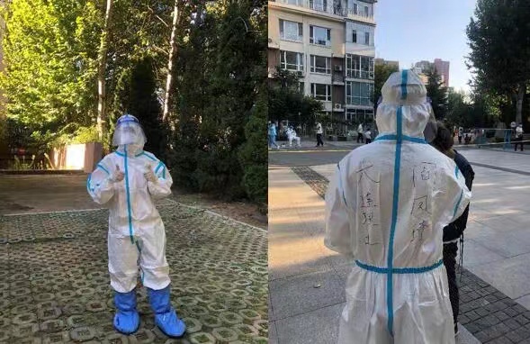 疫情防控是一场没有硝烟的战争,2020级MBA3班阎凤琦担任志愿者十五天中,维持核酸检测秩序,给居家隔离人员发放抗原检测试剂,搬运补给蔬菜包,给行动不便的居民送菜,给孤寡老人买药等。每天5点半开工,穿着厚厚的防护服进行扫码工作,汗水湿透了衣服,闷热、缺氧、汗流浃背都是最真实的感受。日出而作,日落不息,每天累但充实,她说:“平凡中的不平凡,有幸做一名志愿者。愿山河无恙,人间皆安,尽绵薄之力,不负青春,不留遗憾!”
