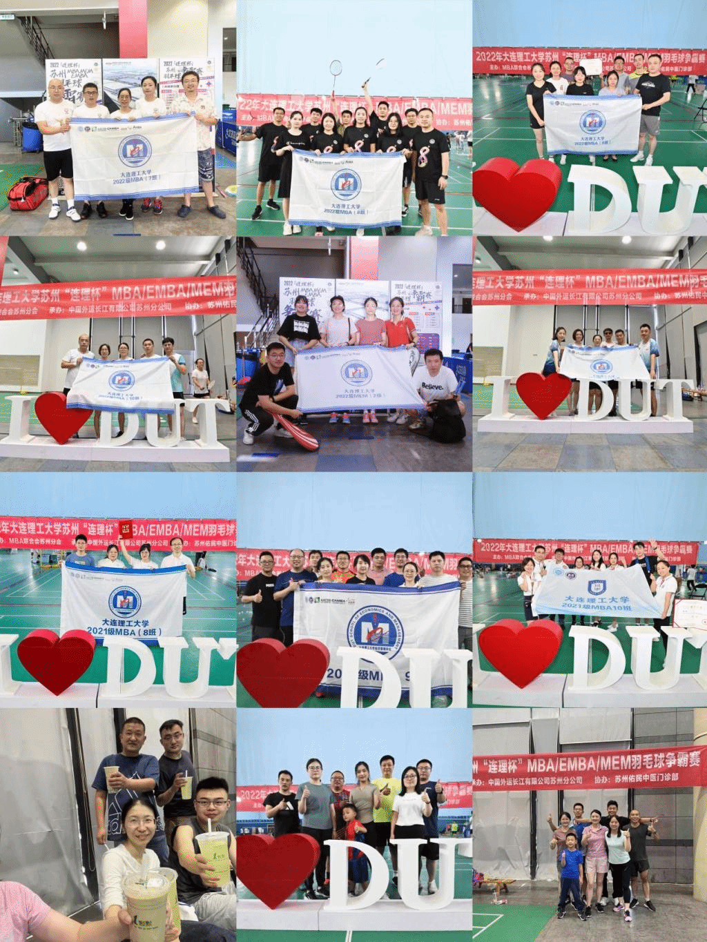 为丰富大连理工大学MBA苏州同学们的文体生活,培养集体荣誉感和团队精神,提升向心力和凝聚力,展示同学们的团结和谐、勇于拼搏的精神风貌,2022年9月,大连理工大学2022年“连理杯”MBA/EMBA/MEM苏州羽毛球争霸赛成功举办。本次比赛由中国外运长江有限公司苏州分公司承办,苏州佑民中医门诊协办。2020-2022级MBA、MEM和EMBA共12支班级代表队参赛。