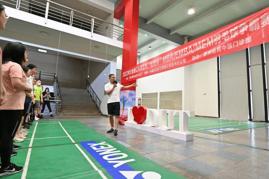 9月12日,羽毛球初赛小组赛在苏州三香路体育中心开启,开场仪式由大连理工大学MBA联合会苏州分会文体部副部长于涵主持,经济管理学院专业学位教育中心MBA项目部老师郭修宇致辞并宣布比赛正式开始。