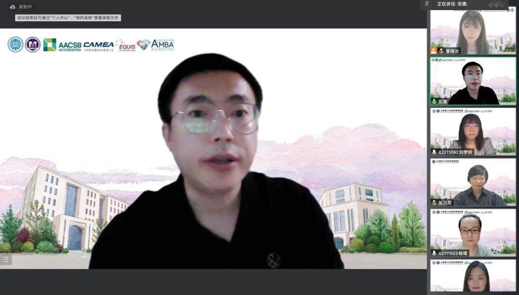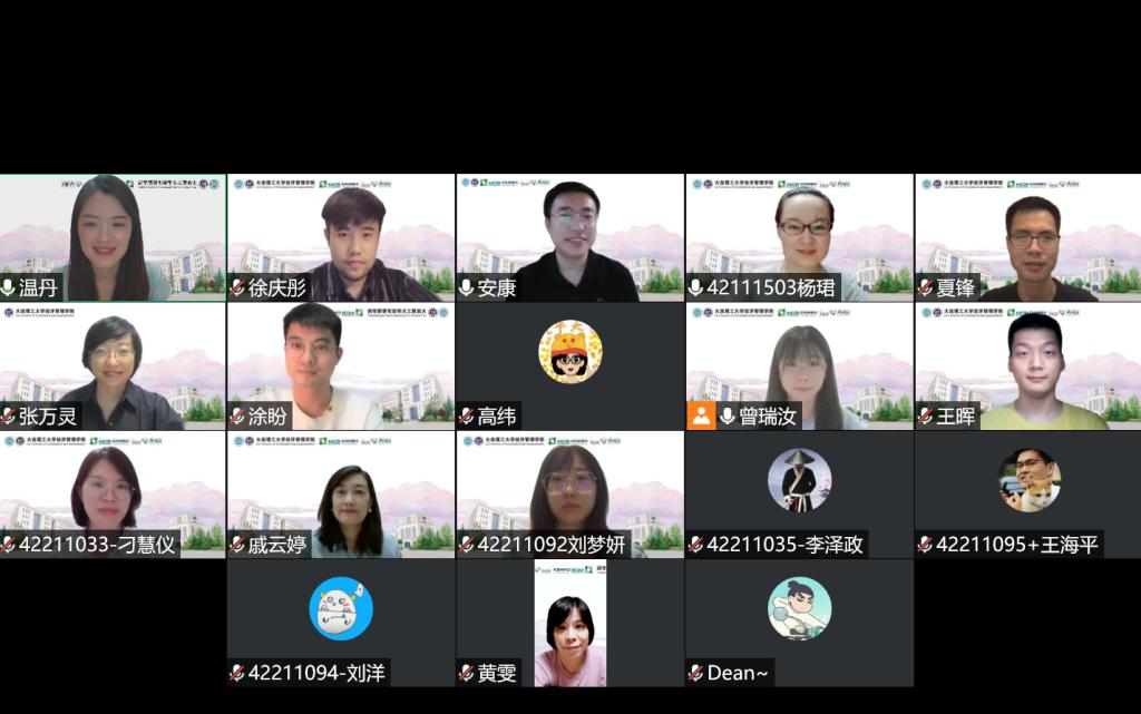 在这秋色宜人的季节,大连理工大学MBA联合会深圳分会纳新活动如约而至。9月18日20点,大连理工大学经济管理学院专业学位教育中心MBA项目部尹春香老师,张万灵老师,安康老师,2019级和2020级联合会深圳分会主席团成员以及现任联合会成员通过线上(腾讯会议)共同出席了本次纳新活动。会议由2021级联合会深圳分会秘书长杨珺主持。