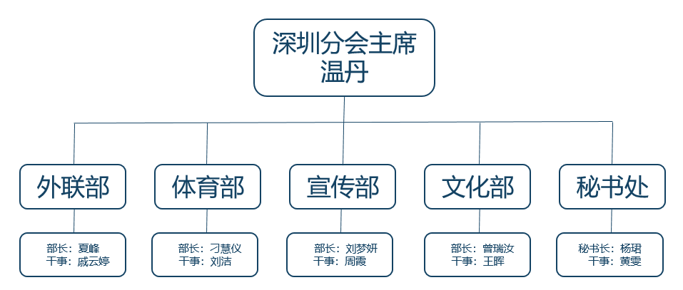 接着,现任大工联合会深圳分会主席温丹同学就联合会深圳分会组织架构进行了介绍,并就各部门具体职能进行详细讲解。