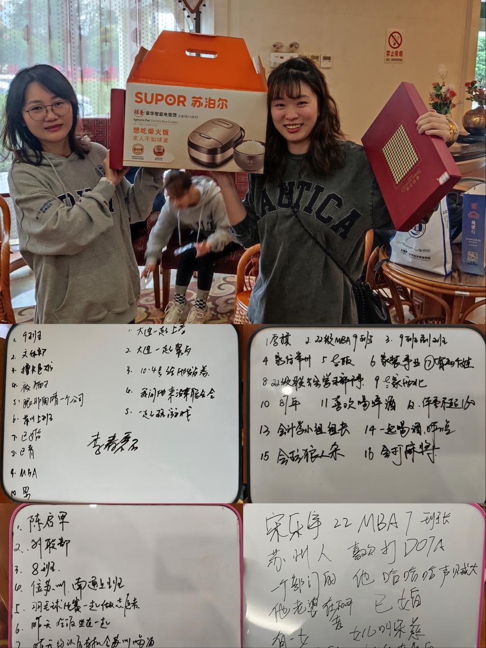 通过一天的相处,30日早上开展了默契考验的游戏:随机2人为一组,当场写下对方的信息:①姓名②工作、职务、家庭情况等③写在与对方这两天发生的一个小故事,用关键词表述即可。答对最多或者获得对方认可度最高的,获得小礼品一份。