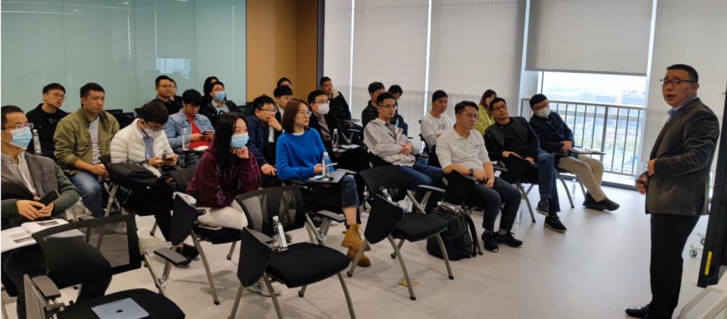 随后,聚合数据副总裁韩剑锋以“企业微数字化的实现路径”为主题,以企业数字化发展的角度向我们详细讲解和分享了什么是企业微数字化、实现路径、应用场景以及典型案例。在学习过程中,同学们结合实际工作经验积极提出问题,韩剑锋总裁均耐心细致地予以解答。