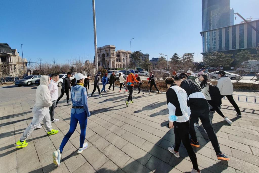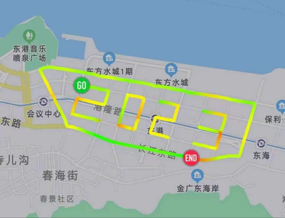 热身完毕后,2023新年跑正式开启。这支奔跑的队伍成为东港街区上一道靓丽的风景线。