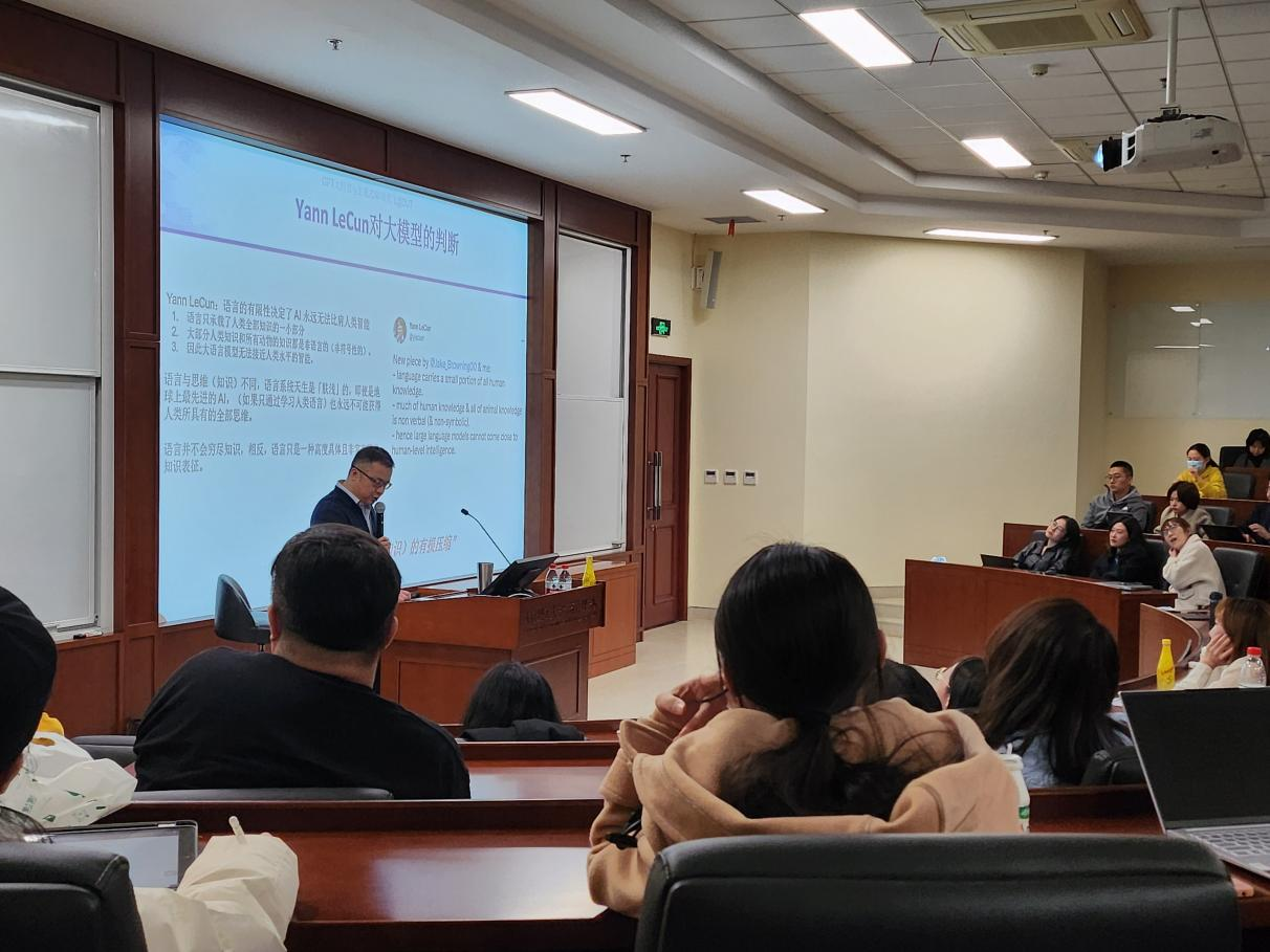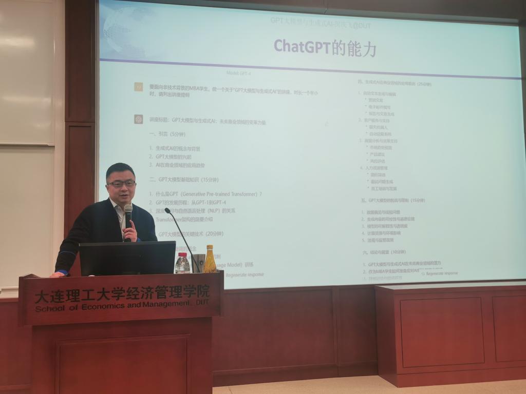 玉兰花开吐芬芳,繁花似锦报春来。2023年03月末,智慧百科第89期讲座在经管学院召开,大工经管学院闵庆飞教授为我们主讲主题为GPT系列模型与生成式AI — 技术发展与商业挑战,通过对生成式AI的整体发展形势、GPT系列大模型的技术原理、GPT大模型的能力、局限和应用前景以及如何利用好GPT大模型等四个方面进行了一场精彩的讲座。