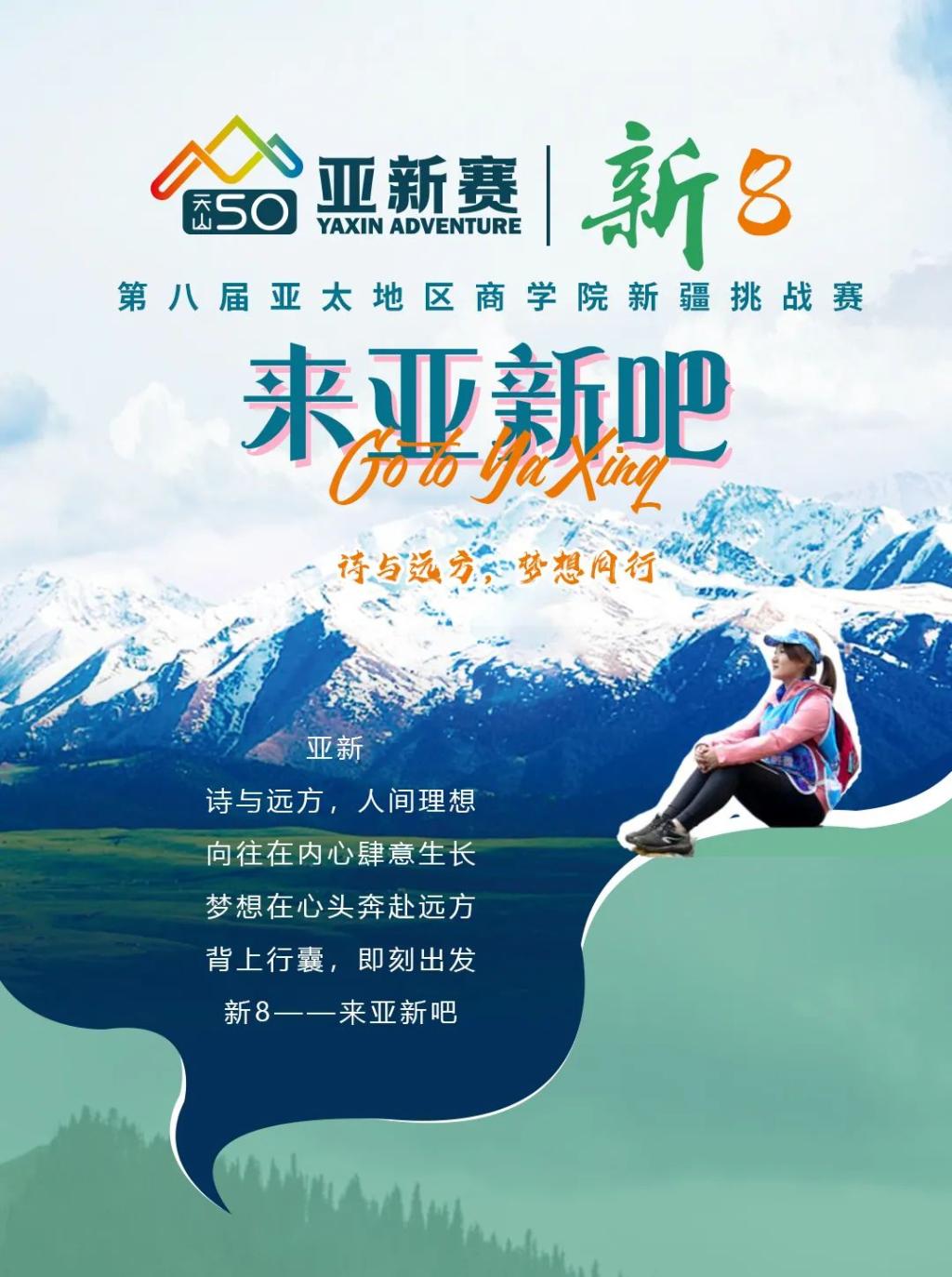 亚太地区商学院新疆挑战赛,简称“亚新赛”,被称为商学院最美赛事。首届赛事于2016年6月在新疆举办,截至目前已成功举办4届。2019年,70多所商学院,1100名学生参与了第四届赛事,赛事定位于商学院人群,增强文化交流,促进“一带一路”经济建设,探寻西域文化,倡导自然和谐与体育竞技相结合的赛事理念。