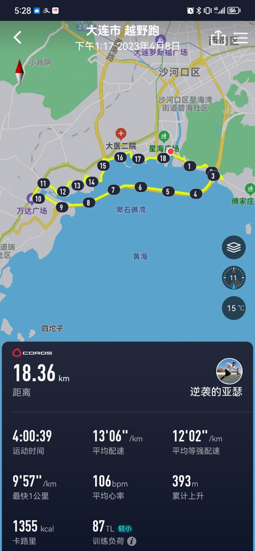 4月8日,春和景明,大连理工大学蓝鲨队沙十一团训第36次燃情开跑,穿越星海湾大桥。本次长距离拉练活动,模拟在沙漠中徒步,重在训练长距离负重徒步耐力以及团队默契配合(保持队形踩前面队员脚印)。起点为星海广场,途经滨海路-森林动物园-海事大学-西尖山-黑石礁-星海公园,返回星海广场,全程约18公里。