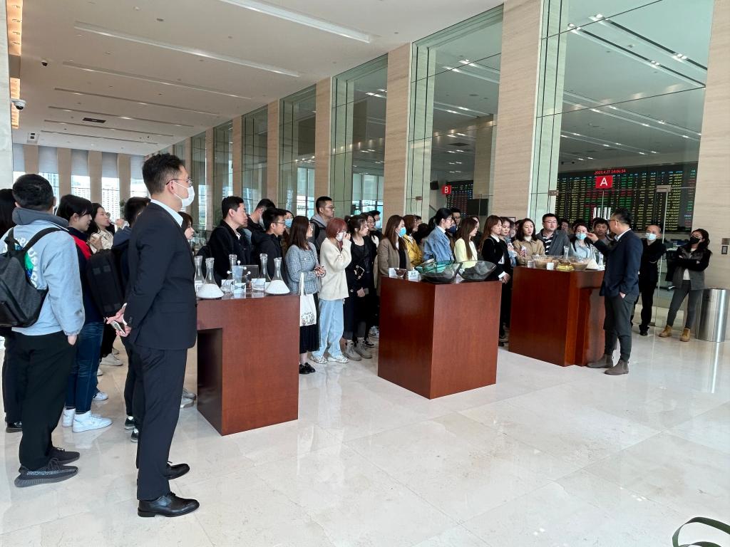 同学们先参观了交易大厅,对交易所的实际工作场景和期货交易大厅有了初步了解;接下来步入实物展厅,由崔岱虎校友为大家进行了详细介绍和讲解。