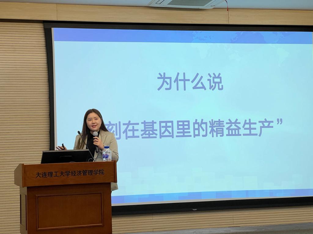 2022级MBA1班的乔瑜——大连盛峰包装制品有限公司销售总监,从企业发展历程、现状及企业未来发展自己的思考等方面为同学们分享了一场“刻在基因里的精益生产”实践演绎。