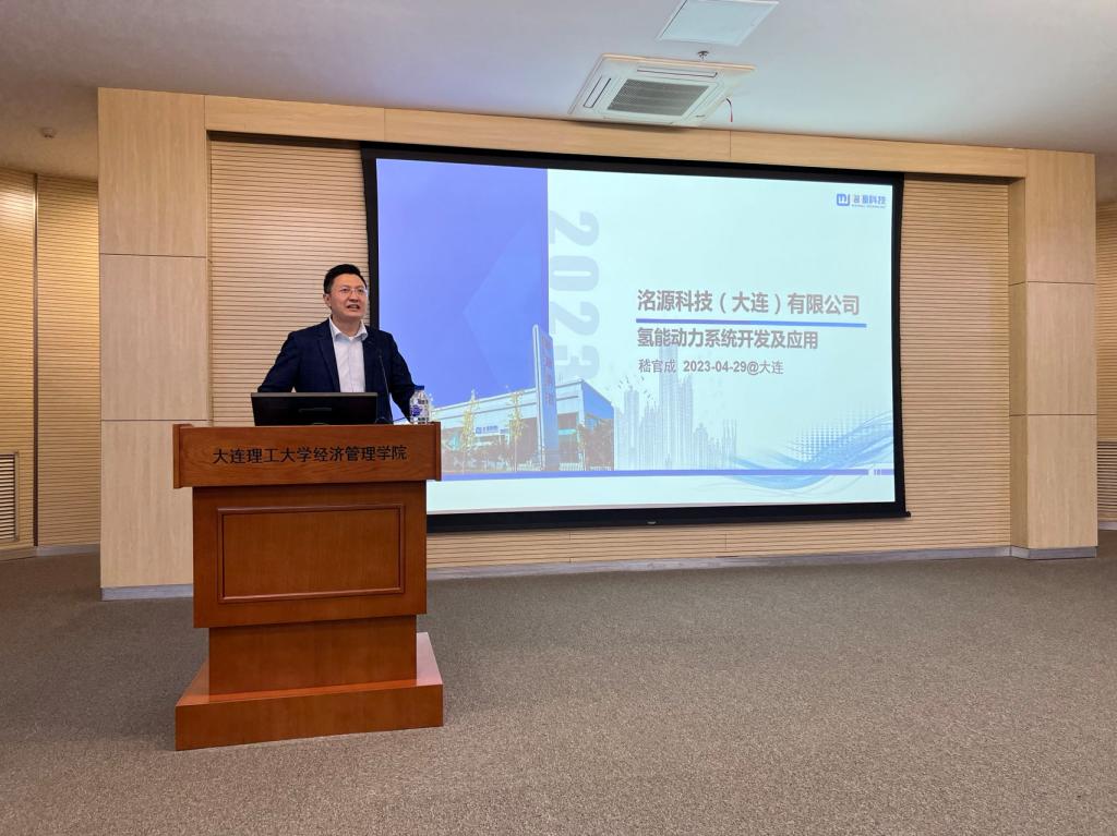 首先由2022级EMBA2班嵇官成——洺源科技(大连)有限公司的总经理为大家带来分享《氢能动力系统开发及应用》。嵇同学分享了公司核心业务和产品、氢能源行业面临的痛点和解决思路,以及应用案例等方面内容。