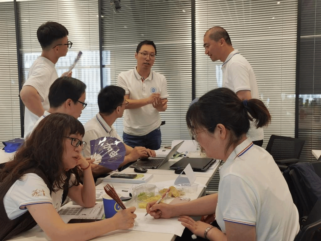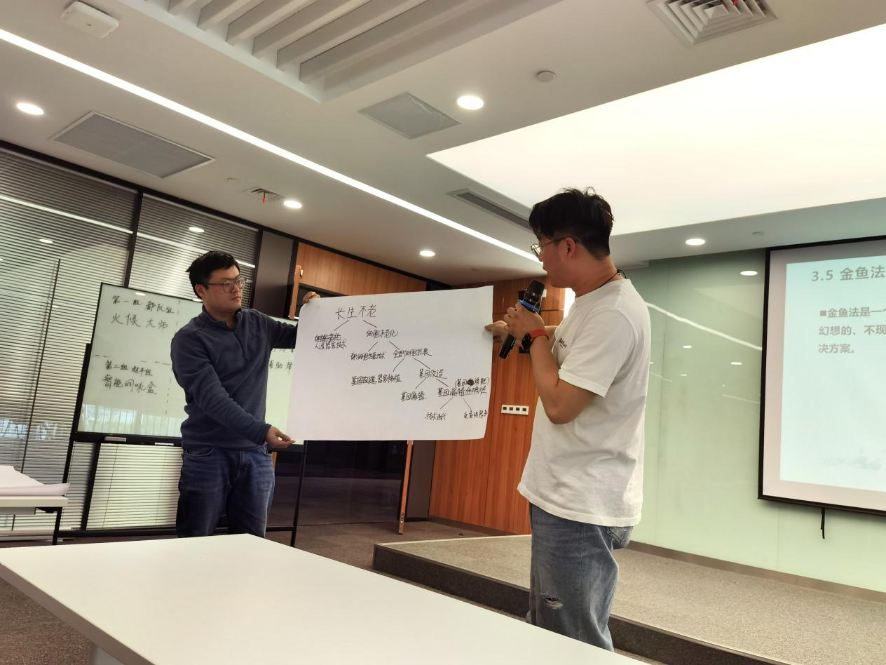 在系统地了解到创新思维的方式、技法、逻辑、文化和方法论后,为训练同学们在面对企业创新难题时解决问题的思维和能力,邢老师抛出了一个难题:如果企业现在生产的产品将不再允许销售或提供的服务不复存在,你能想到哪些新的业务方向呢?各小组展开了激烈的思维碰撞,打破了思维边界,聚焦痛点问题,将企业沉淀资源进行重组运用,发现和创造机会,并讨论出配套的解决方案。有的小组由研产销全流程下沉到细分领域产品研发,有的小组由生产转型为整体方案设计,有的则调整产品适配市场,整个过程极度烧脑,却为企业发展勾勒出了一片新的蓝图。