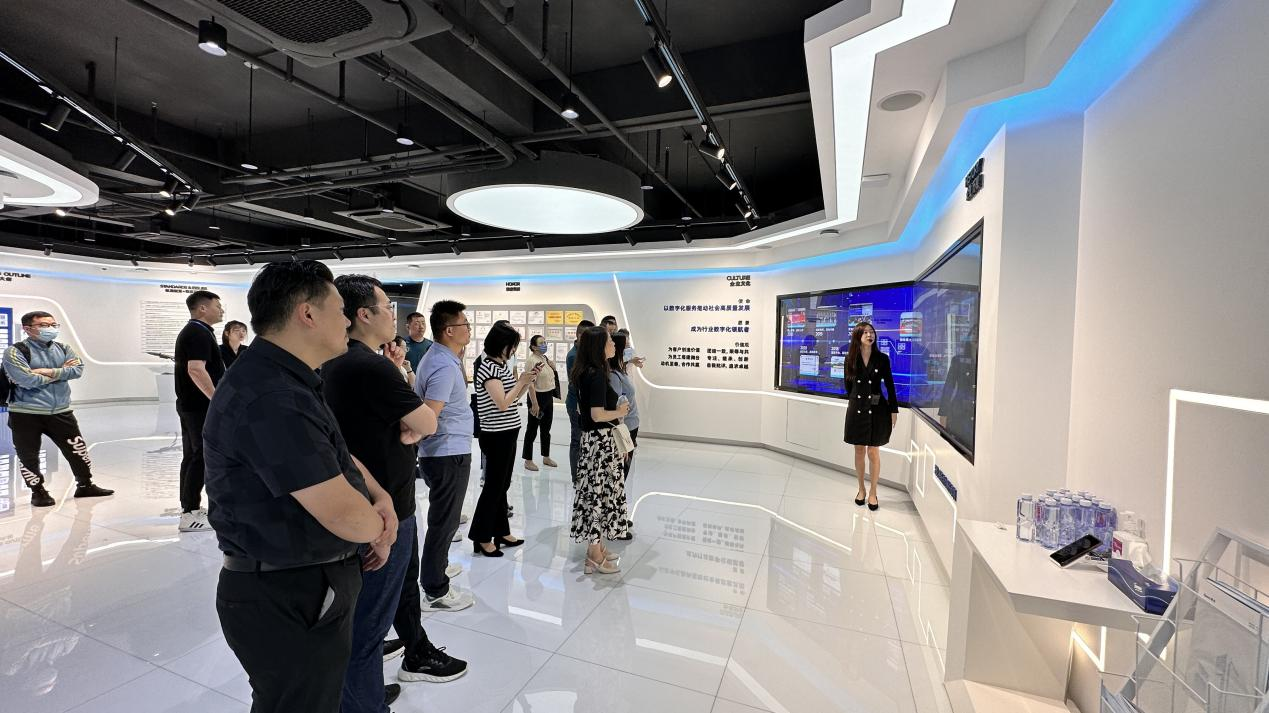 此次产教融合实践活动得到了国泰新点软件股份有限公司的大力支持。通过经理助理沈佳女士熟稔流畅的展厅导览介绍,我们了解到新点股份作为政企数字化整体解决方案提供商、国家鼓励的重点软件企业,立足智慧招采、智慧政务、数字建筑三大核心业务,为各级政府部门、大型集团企业及相关单位提供从规划咨询、软件开发与智能设备研发、实施交付到持续运营维护的全方位服务,硕果累累,荣誉卓著。