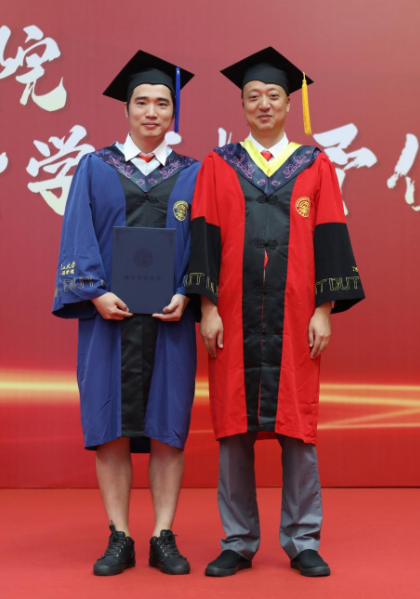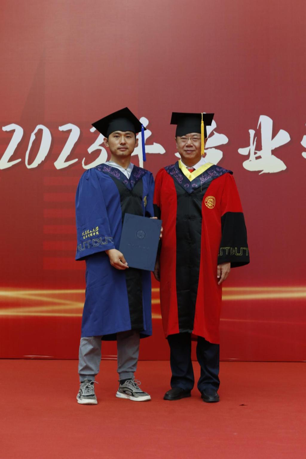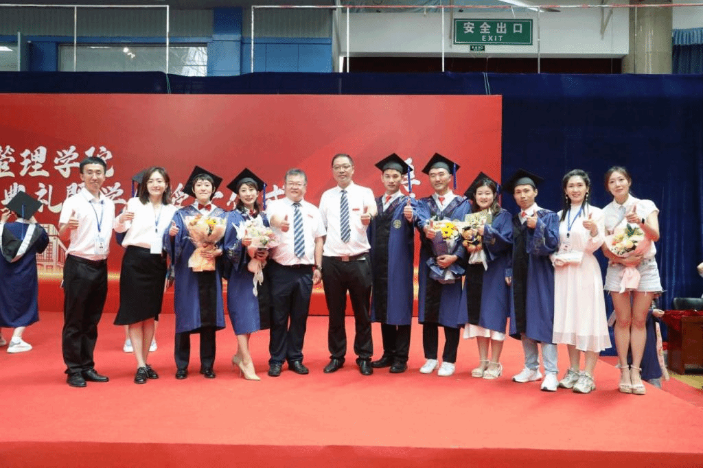 毕业生们在欢快的歌声中依次登台,学院学位分委员会老师身着导师服为现场毕业生们拨穗正冠、授予学位并合影留念,定格这一难忘瞬间。