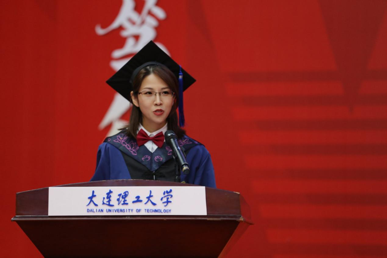 2020级MBA李木子代表毕业发言。她首先代表全体毕业生向母校、老师们和家属们表达了衷心地感谢。随后带领大家一同回忆了在经管学院短暂而充实的学习时光——“产教融合的多元教学模式,让知行合一化教于心;新生案例大赛、企业诊断大赛,让理论知识融学于趣;六角楼论坛、学术讲座,让创新意识落实于行”。最后代表全体毕业生,祝大工、祝经管,越办越好!祝老师们,工作顺心、桃李满园!祝同学们,前程似锦,一生幸福!