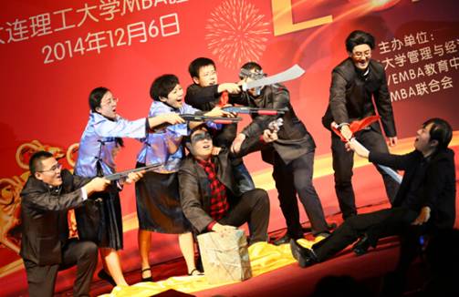 开发区班的《甄嬛传》小品也是向经典致敬,用自己的方式戏说穿越生活;还有开发区班和MEM班同学合作演出的中国古文化杂糅,更是给我们展现了一场古色古香的的文化集锦,行云流水的书法、婉转低沉的琵琶、余音绕梁的古筝完美地结合在一起,展示出我们2014级MBA同学的多才多艺。