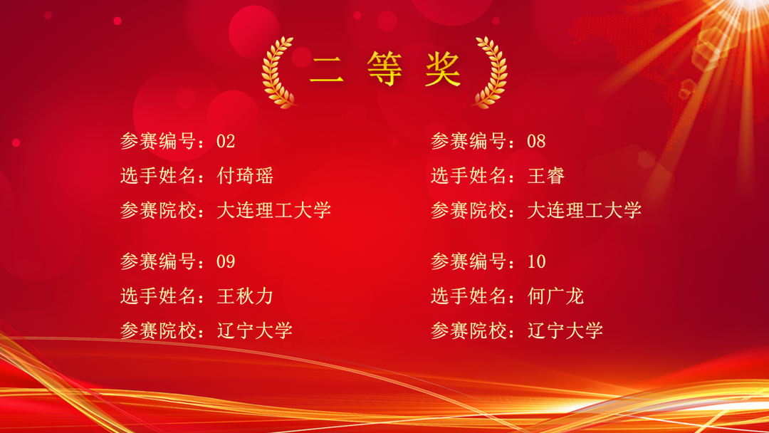 大连理工大学付琦瑶荣获二等奖、大连理工大学王睿荣获二等奖、大连理工大学乔向东荣获三等奖。