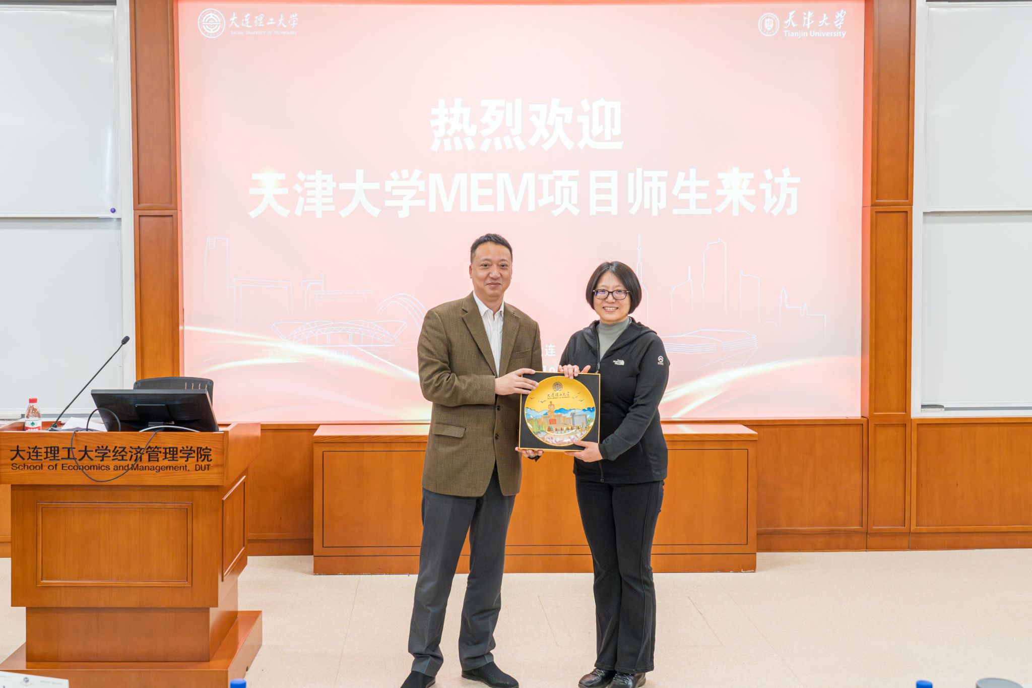 随后,丁永健副院长与孟俊娜主任代表两校师生互赠纪念品。