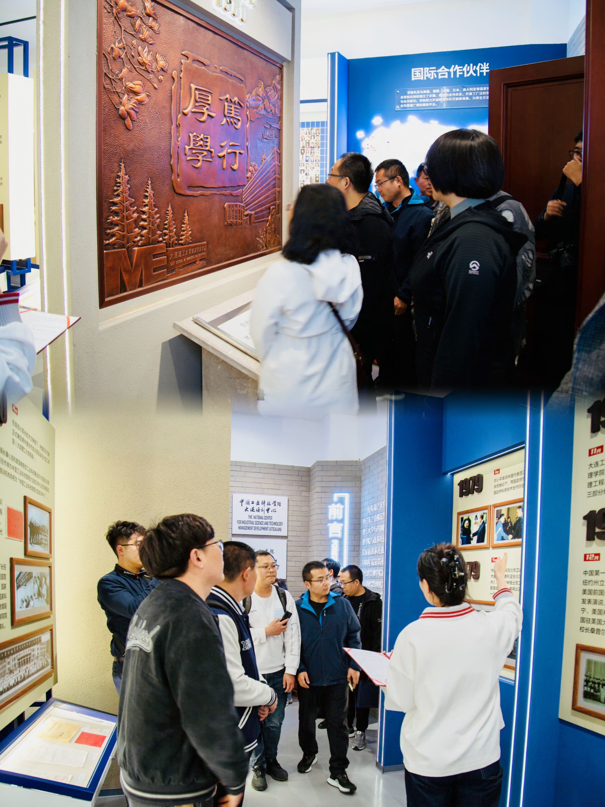 座谈会后,天津大学MEM项目师生一行参观了经济管理院院史馆。讲解员细致地讲解了学院从1980年创立之初至今经历的重要变革,以及新时代下经管人脚踏实地、履践致远的责任与担当。