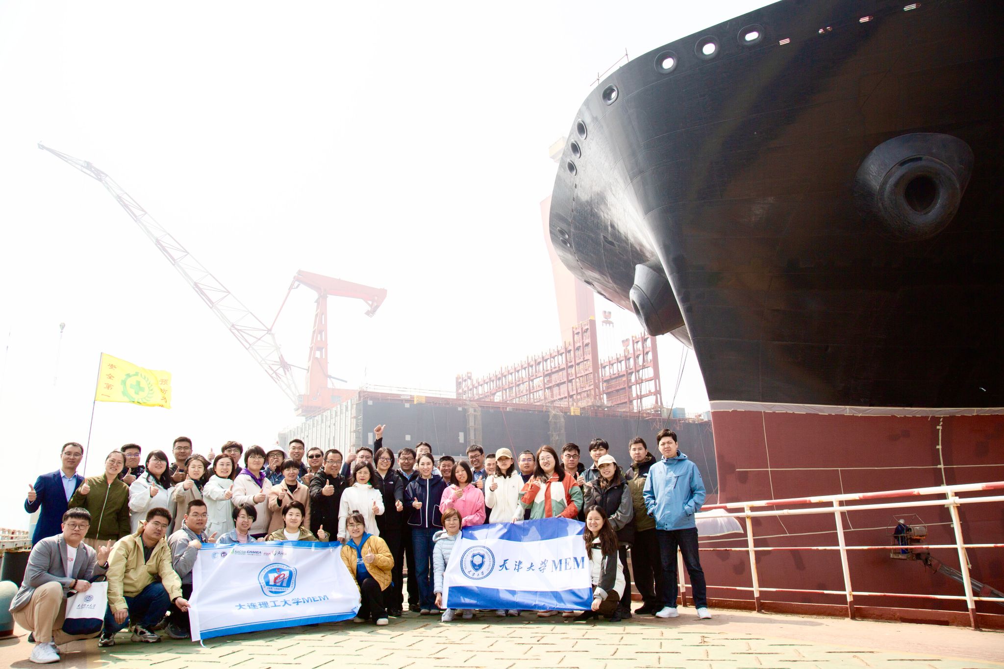4月7日上午,两校MEM师生一行参访大连船舶重工集团有限公司(以下简称“大连船舶重工集团”)。始建于1898年的大连船舶重工集团,历经多个发展阶段,创造了中国造船史上80多个“第一”,见证了中国船舶工业从小到大的发展历程,成就了共和国海军由弱变强的历史跨越。在企业的精心组织下,同学们深入船舶建造第一线,近距离观察了船舶及海洋工程的建造过程,并与工程师们进行了深入的交流与讨论,真切地感受到了“中国智造”的力量。