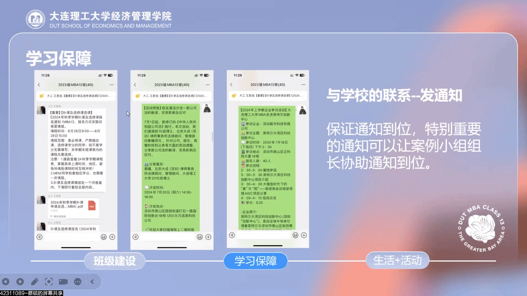 2023级MBA13班班长蔡硕:打破舒适圈,促进班级内部联系