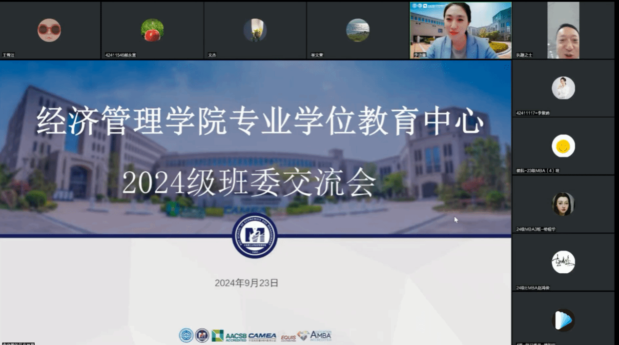 又是一年开学季,多样化的教学任务、学生活动都已相继开展。从班级的建设到学院的发展,班委作为每个班级的凝聚核心,在各项活动中发挥着至关重要的作用。9月23日,经济管理学院专业学位教育中心组织召开2024级班委交流会,会议邀请了2023级MBA4班班长翟航、2023级MBA10班班长袁本涛、2023级MBA13班班长蔡硕作为班委代表进行经验分享,经济管理学院副院长丁永健、MBA学生事务办公室全体老师以及2024级全体班委出席本次会议,会议由专业学位教育中心副主任李晓蕾主持。