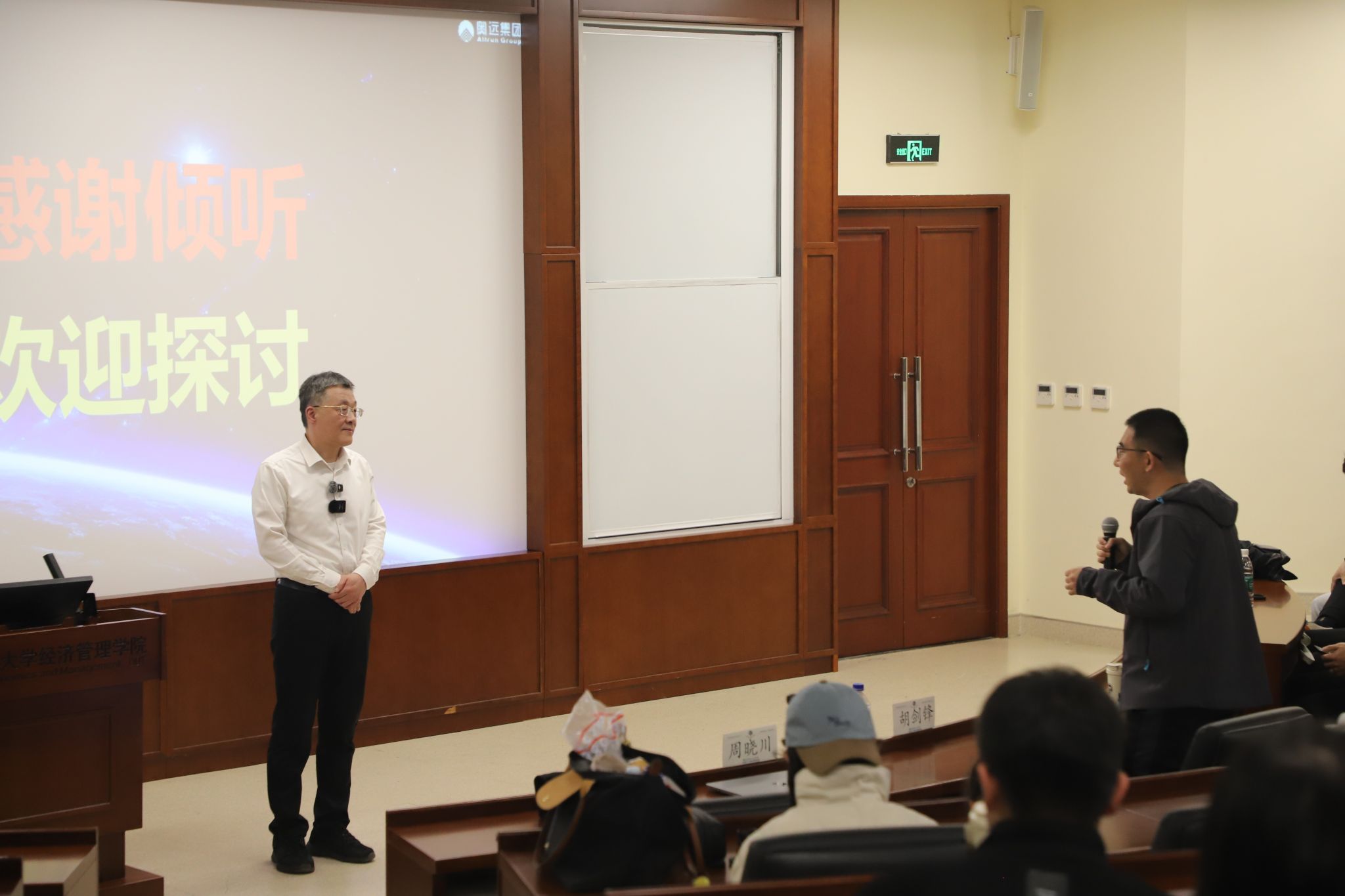 互动环节,同学们围绕“AI的实际应用AI时代的职业规划”等话题踊跃提问,周晓川校友和胡剑锋董事长一一耐心解答,现场气氛热烈。