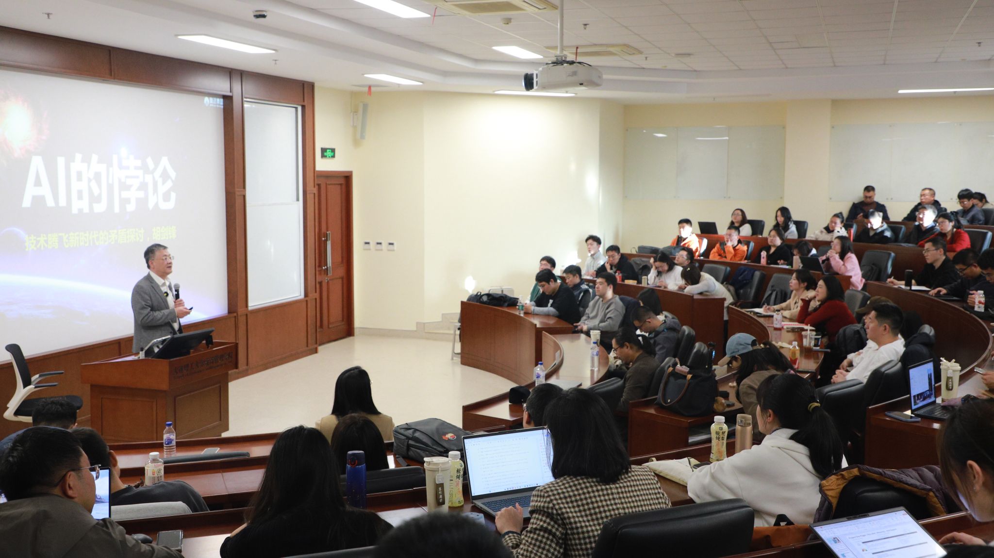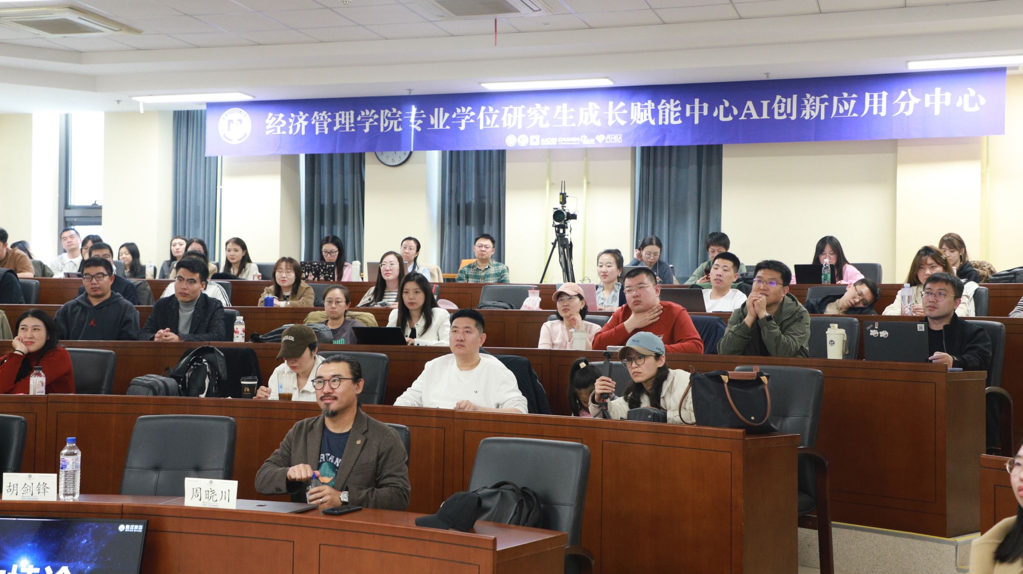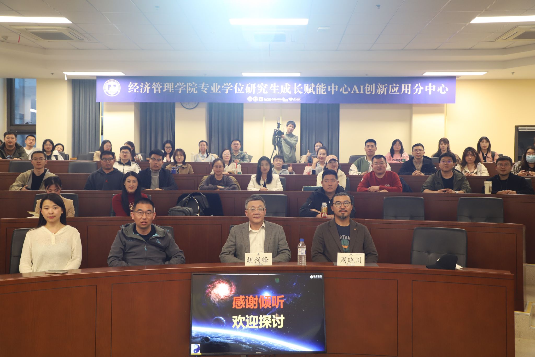 2025年4月20日,由专业学位研究生成长赋能中心AI创新应用分中心主办的“直面AI焦虑:技术认知与思维提升”主题讲座在经济管理学院成功举办。本次活动特邀奥远集团董事长、大连理工MBA创新创业导师胡剑锋先生与Oracle亚太区大数据人工智能解决方案负责人周晓川校友联袂主讲,两位嘉宾带领现场和线上观众深入探讨了人工智能(AI)技术的本质与发展现状,旨在帮助同学们建立理性AI认知框架,掌握AI时代的思维升级路径,赋能职业发展。