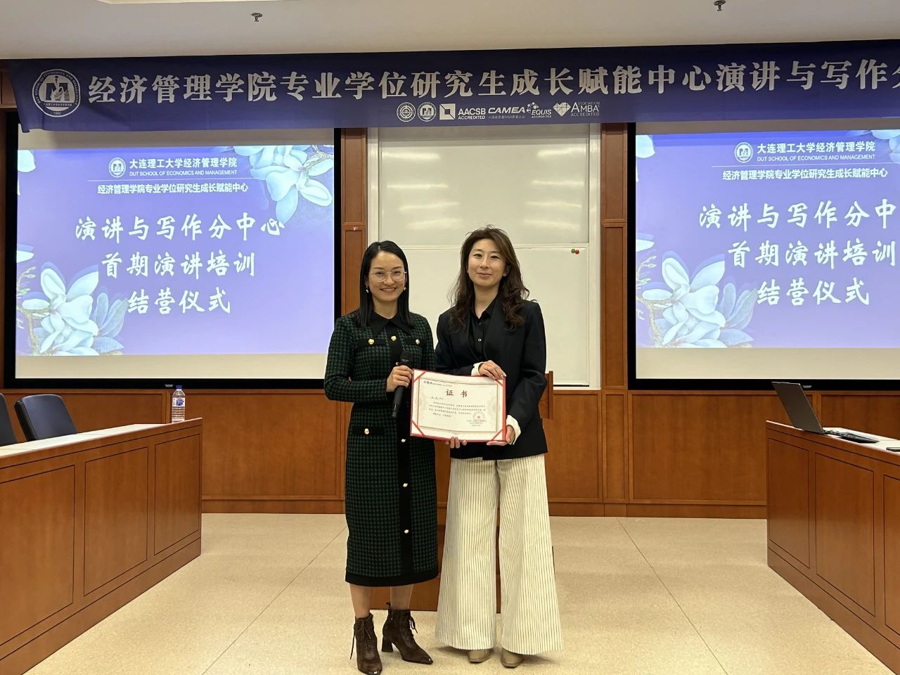 专业学位教育中心副主任李晓蕾老师现场致辞。她首先对唐琪凯老师加盟本次培训表示诚挚感谢,同时肯定了学员们敢于突破自我、追求卓越的积极态度,同学们的热情参与赋予了成长赋能中心更大的责任和使命。学院会和成长赋能中心一道,持续为同学们的能力进阶与职业成长提供支持。在热烈的掌声中,李老师为唐琪凯老师颁发成长赋能中心行业导师聘书。