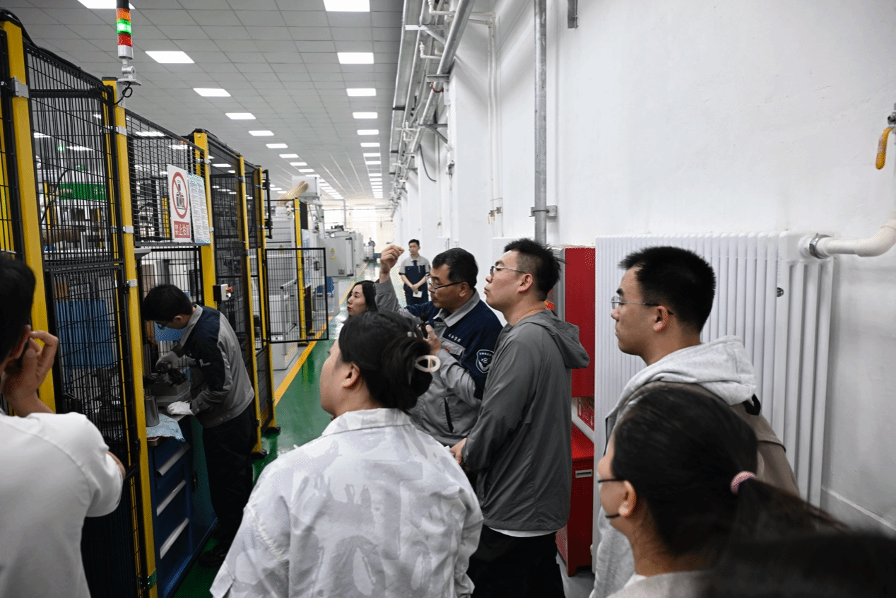 参访首站,师生团队走进瓦轴老厂区,依次参观了瓦轴“小白楼”、滚动体公司、锻压公司及轴承配件分公司。这座建于建厂初期的“小白楼”,曾是瓦轴集团的管理决策中心,见证了中国轴承工业从无到有、从弱到强的辉煌历程。在瓦轴滚动体分公司,师生们参观了精密级圆柱圆锥滚子作业区、大型滚子作业区及终检区。其产品广泛应用于风电、盾构机、高铁等高端装备领域,并凭借卓越品质赢得远景能源、西门子弗兰德、中国铁建等国内外知名企业的高度认可。走进瓦轴锻压公司,总经理吕建英老师以饱满的热情向师生们介绍了公司的核心产品与技术装备。他坚定地表示:“我们对自己生产的产品充满信心,始终以工匠精神为引领,坚持用品质说话,持续优化工艺、提升技术实力!”铿锵有力的话语,不仅彰显了瓦轴人对产品的高度自信,更体现了他们在打造“中国第一、国际一流”品牌、成为行业“领跑者”和“标准的制造者”道路上的坚定信念。最后,团队来到轴承配件分公司,作为国内最大的轴承热处理生产基地,公司拥有多条先进热处理生产线,专业生产各类高端轴承,现已成为全球顶尖机械制造企业的战略合作伙伴。