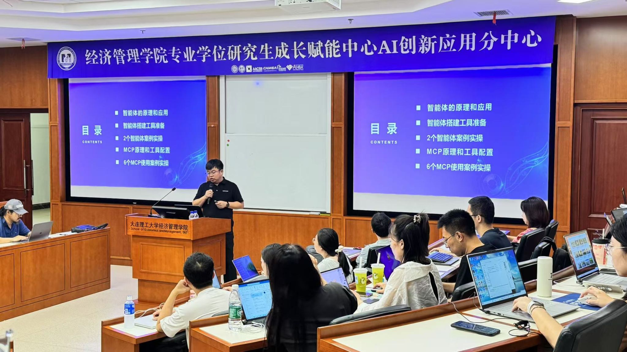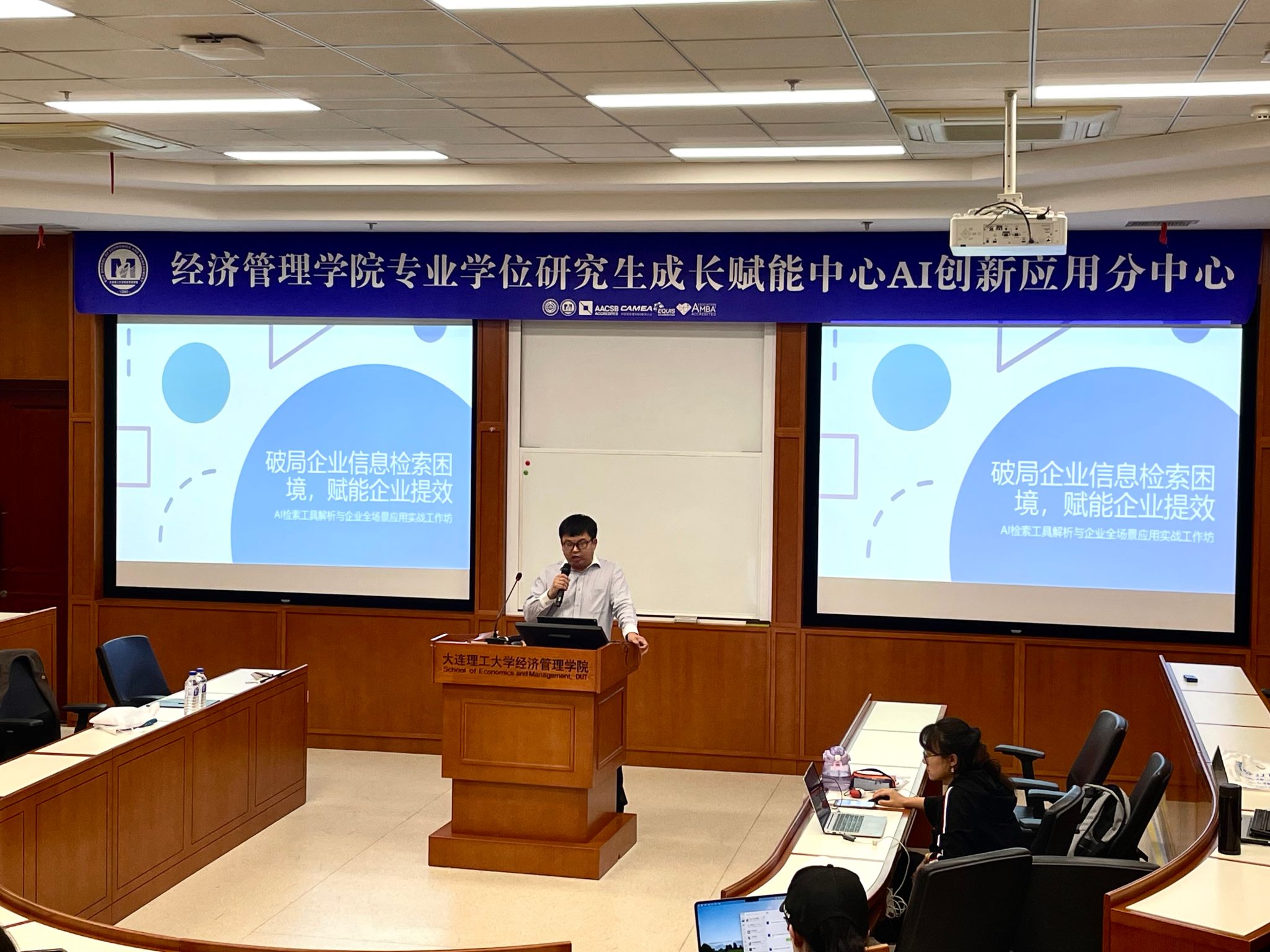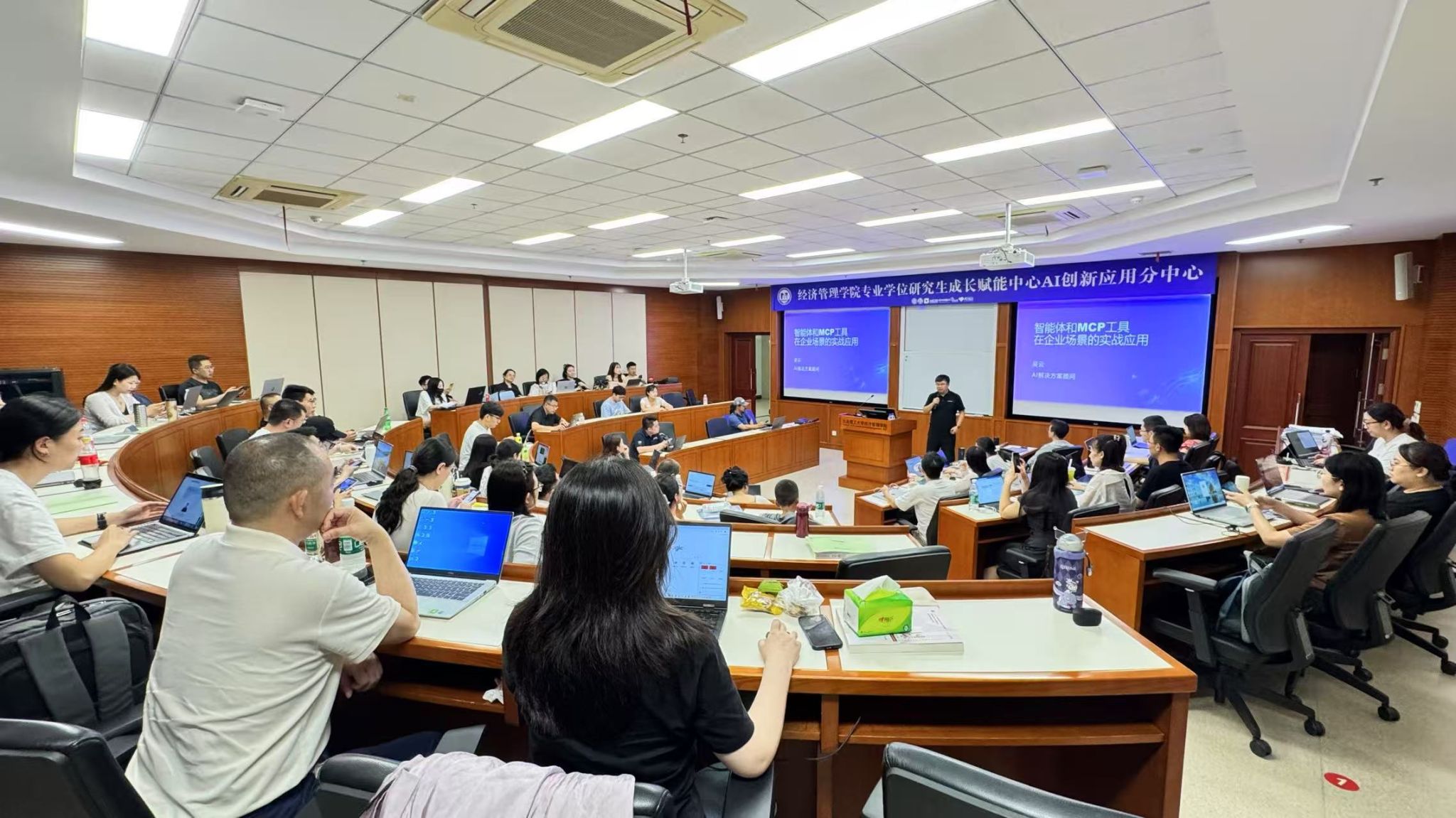 成长赋能中心AI创新应用分中心于近期成功举办两场“AI+企业场景应用”实战工作坊活动。本次活动特邀国际头部IT公司AI技术专家吴云担任主讲嘉宾,为百余名专业学位在校生及校友打造了从技术认知到场景实战的完整赋能体系,助力同学们在数字浪潮中赢得职业发展先机。