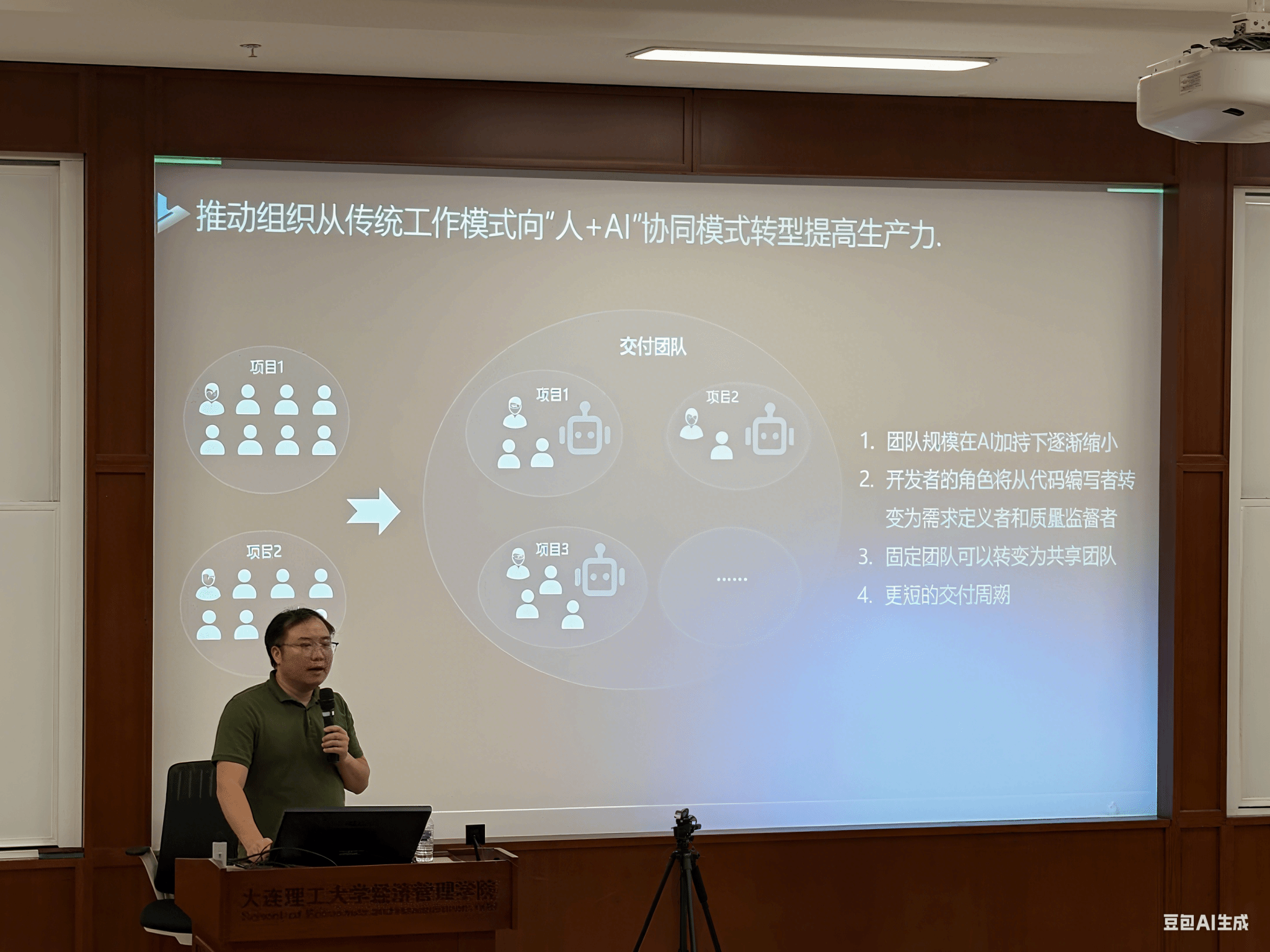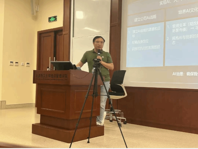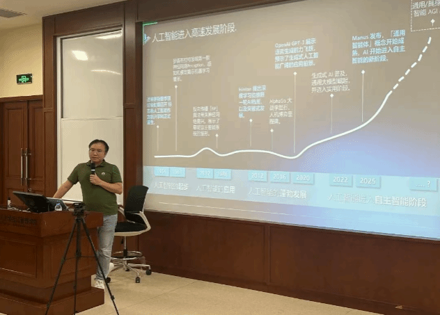 8月1日,领悦数字信息技术有限公司南京分公司、宝马信息技术中心总经理戚海飞先生结合宝马数字化转型实践,用生动的案例带领同学们探寻数字化转型的本质。讲座以“AI智能化赋能企业发展的挑战与思考”为主题,从AI技术的发展脉络切入,简要梳理了近年来在大模型、自动化决策与人机协同等方面的关键进展,同时分析了AI在企业中的具体应用路径与赋能成效,深入探讨了AI落地过程中企业普遍面临的现实挑战以及具备何种特征的企业更有可能构建差异化竞争力,最后初步提出企业应如何做好积极准备,以系统性地迎接AI智能化浪潮。