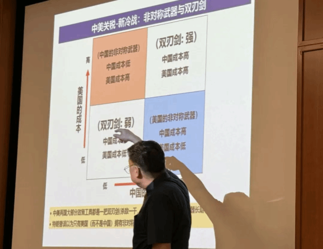 讲座最后,张教授解析了中美地缘政治博弈的战略收敛现象。两国策略看似对立,实则都在强化规模与模式的协同。美国曾依赖自由市场,但近年转向强化政府作用,试图弥补产业空洞化;中国则持续完善市场经济,扩大市场活力。两国政策多为“双刃剑”,单纯依赖非对称“武器”难以为继,最终需回归“规模+模式”的核心竞争。