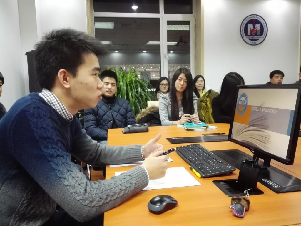 1月9日下午五点,大连理工大学MBA联合会(大连)年度工作会经过近二周的筹备启动,MBA/EMBA教育中心主任助理吕一博老师、副主任孙力老师,事业发展部宋平平老师,第十二届MBA执委会主席王连山、第十三届MBA执委会主席孙德志以及两届联合会成员出席,师生共同研讨2016年联合会建设与发展话题。