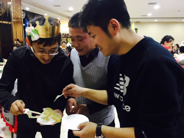 当晚,沈阳班可谓是好事成双,一是拓展当天恰好是我班史记同学的生日,在班委会的计划下,大家给史记同学带来了他生日里的一个惊喜——一个生日蛋糕,一张签有全体同学名字的生日贺卡和每一个同学的生日祝福。