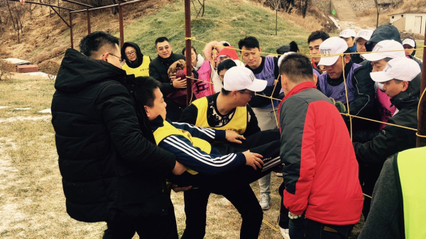 同学们分成雄鹰队、辉煌队、苍狼队及郎才女貌队,展示了队旗、口号及队歌。拓展训练中,“赢跑环节”训练了同学们的反应能力、逆向思维能力以及快速适应变化的能力;“团队圣塔”环节训练了团队的分工协作、提高效率及应对变化的能力;“急速60秒”环节训练了团队成员间相互支持、相互信任并不论顺境逆境始终保持冷静的能力。
