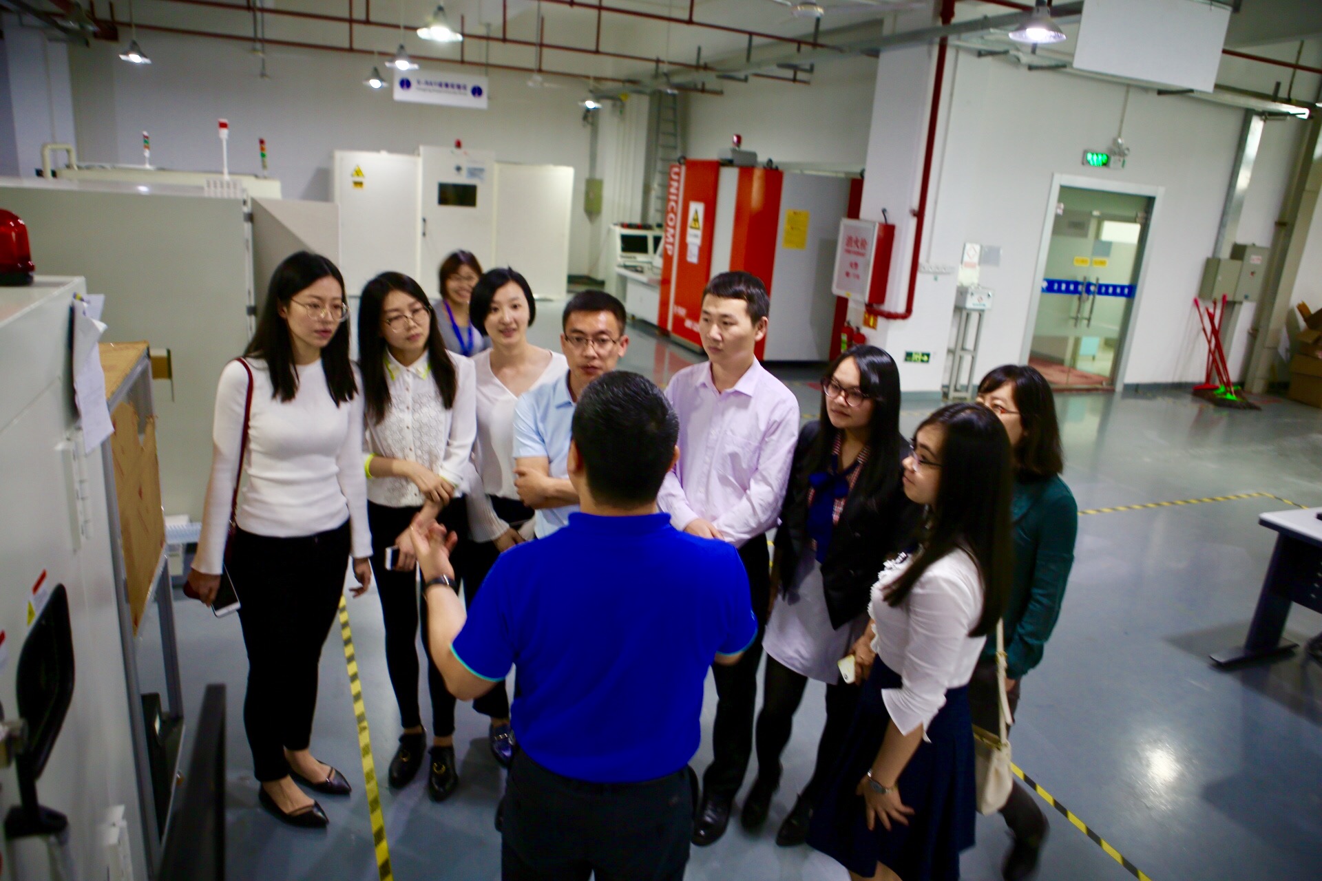 随后,李总带领大家参观了车间,为大家展示行李安检机、锂电池检测机、半导体检测机的模拟和应用。公司十分重视投资并研发基础核心技术,掌握了多项专利成果,如成功研发了X射线源技术。当我们一行人通过设备调试区时,那种对高科技的尊重与敬畏之感在大家的心里油然而生。