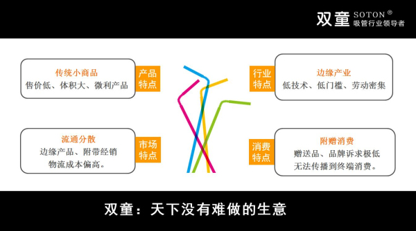 其次,双童的创新精神形成一种企业文化,双童的创新是通过思维创新驱动产品创新、管理创新。双童的产品里有一款幼儿用的吸管,在喝水时吸管侧面的双颜色“水车”会转动,吸引幼儿爱喝水,并给出“爱喝水的宝宝更健康”概念,让我以实际案例温习了《营销管理》的4P策略。双童的产品中还有这样一款吸管:长长的吸管上方,有一颗粉红色的“心”,“心”的两边弧上各有一个小吸管,如同一对朝天小辫。心形腔体里装有水流止回和过滤装置,解决了传统情侣吸管必须两人同步饮用的尴尬,还能防止液体回流导致交叉感染。这样的“爱心吸管”适用于情侣、亲子,在婚宴等场合非常应景。双童的产品有很明确的市场定位,较高的利润水平。楼仲平董事长在讲座中强调,只有思维创新,才能让其他的创新成为可能。双童已经可以做出全降解的吸管,甚至“可以吃”的吸管。