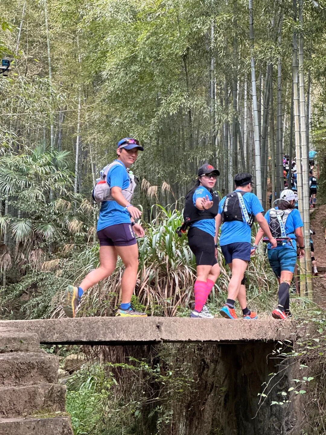 作为亚洲首场参赛人数破万的越野赛事,本次莫干山越野赛以其专业的赛道设计与高规格的办赛标准,成为国内越野领域的标杆赛事。赛道穿梭于莫干山的竹林秘境与原生山野间,比赛当日虽天气晴好,却依旧充满挑战——陡坡连续爬升、碎石路段交错、林间小径蜿蜒,其中35公里组别的比赛累计爬升超1800米,对选手的体能与意志都是极大考验。更关键的是,该组别团队赛以“五人同时完赛”为核心规则,这一设定强调“团队协作”的重要性,要求队员必须同频并进,缺一不可。
