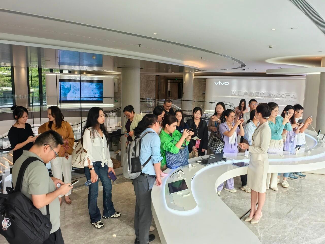 师生们来到产品展厅,体验了vivo旗下的多款热门产品。从影像旗舰到性能王者,从智能手机到智能耳机,丰富的产品线展现了vivo在消费电子领域的全面布局。同学们亲身体验了vivo在影像、设计、性能等方面的技术成果,对智能终端的未来发展趋势有了更深的认识。