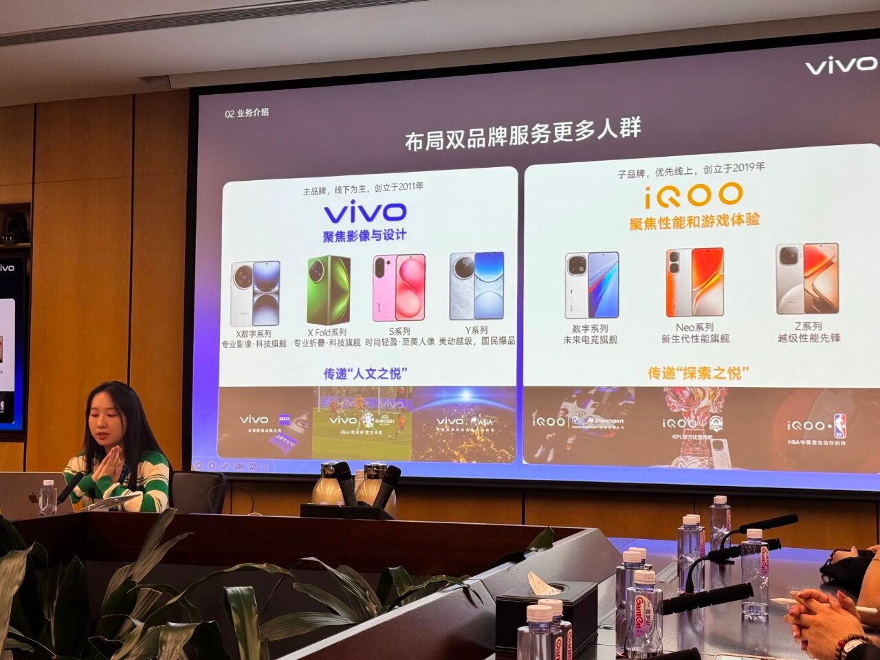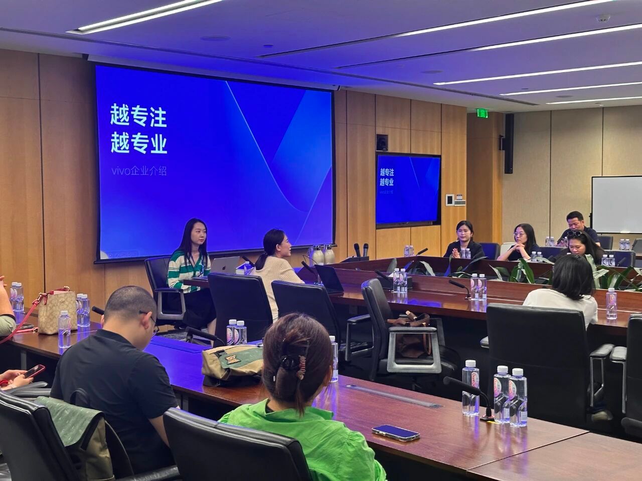 在交流环节,vivo公司校招组李卓妍详细介绍了公司的发展历程与业务现状。vivo的前身步步高成立于1995年,在竞争激烈的通信行业中不断发展壮大。2011年,vivo品牌正式诞生,聚焦于影像与设计,以线下渠道见长;2019年,又推出了专注于性能和游戏体验的iQOO品牌,形成了双品牌战略格局。