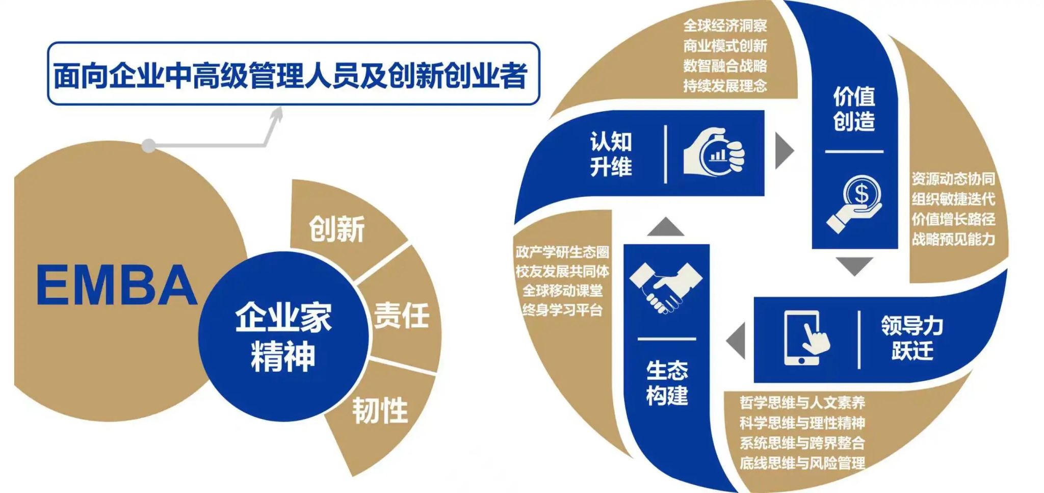 大连理工大学EMBA项目面向企业高级管理人员与创新创业者,依托"认知升维、价值创造、生态构建、领导力跃迁"的四维培养体系,借助理工科大学的背景,发挥“经管+新工科”交叉优势,持续推进“数智+”课程改革,在培养模式中突出AI、大数据与管理的融合,面向新质生产力发展需求,着力培育兼具创新、韧性和社会责任担当的新时代商界领袖。