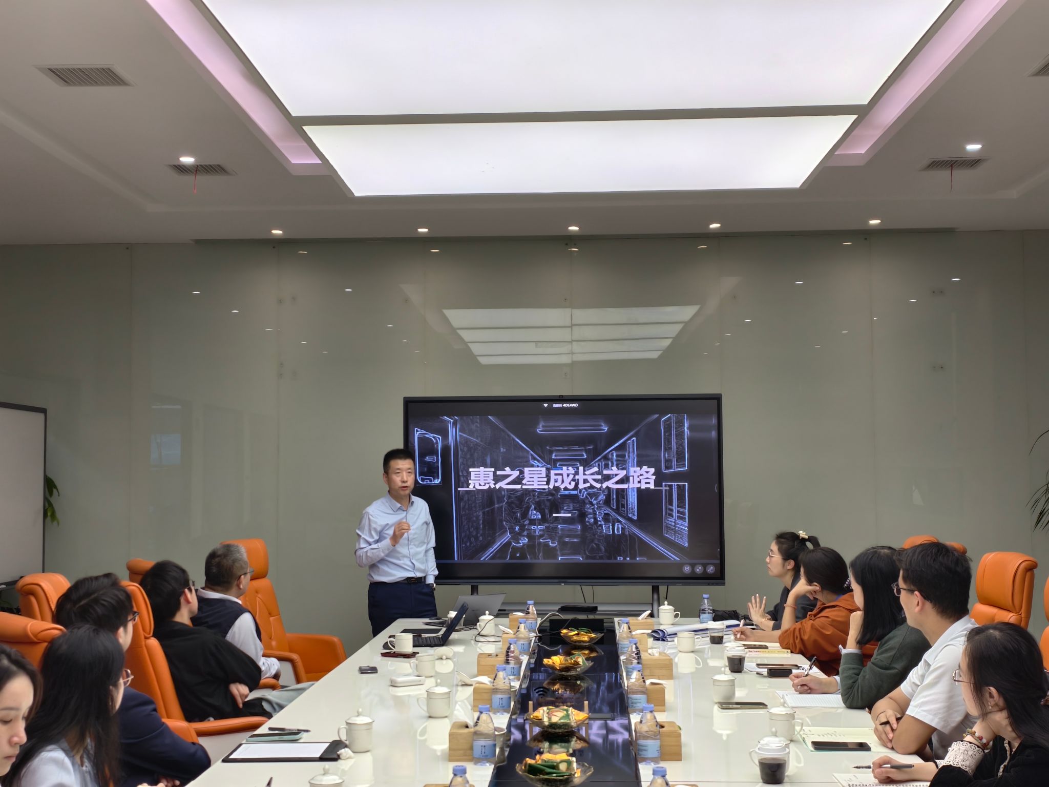 分享会后,师生们在董师兄的带领下参观了企业展览区。这里清晰地展现了惠之星如何将创新方法论转化为实实在在的竞争力。作为高端光学硬化膜领域的“隐形冠军”,惠之星的产品已打破日韩垄断,应用于全球主流手机品牌。从基础硬化膜到尖端折叠屏盖板材料,每一代产品都是其“需求导向”与“战略聚焦”创新逻辑的生动注脚。墙上的研发时间轴更是无声地印证了其“预测未来”的前瞻能力——其折叠屏材料的研发,比行业大规模应用整整提前了三年。