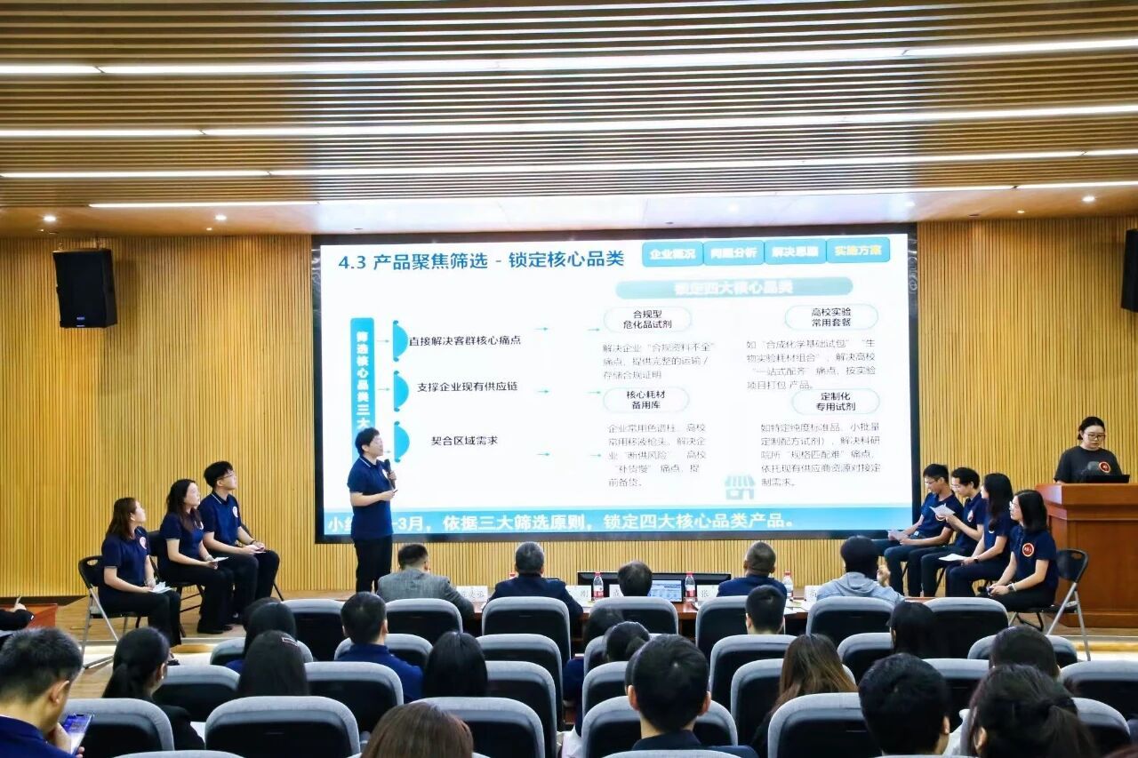 成力为教授以严谨的学术眼光考核方案的逻辑框架与理论支撑,她亲自带领选手们剖析案例,从国际形势、战略格局、模式创新等角度,高屋建瓴地指出在诊断企业问题时应把握的关键方向;企业家评委们则立足实战经验,围绕方案的落地成本、运营效率、行业适配性、现金流管理与执行力等角度,一针见血地提出务实的改进方案与风险警示。两种视角的交叉碰撞,相互印证又相互补充,不仅精准点评了各参赛队伍的诊断咨询方案,更生动诠释了“知行合一”的管理精髓。评委们一致认为,8支队伍的方案呈现了当前中国企业面临的典型挑战,而各参赛队的精彩表现,彰显了新生代管理者将前沿理论与复杂现实相结合的卓越潜力。比赛不仅仅是参赛队之间的对决,更成为一场浓缩的、高质量的管理思想对话,令全场听众受益匪浅。一位企业评委高度赞扬道:“同学们的方案既有学术价值,又能精准切中企业运营痛点,这种‘赛-教-用’深度融合的模式,对企业和同学们而言是双赢。”