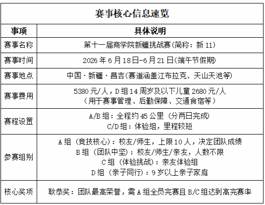 今天,这封来自天山脚下的英雄帖,再次传递到大连理工大学每一位心怀旷野的师生与校友手中——第十一届商学院新疆挑战赛(新11)正式启动,大连理工大学代表队现面向经管学院全体在校生和校友火热招募!