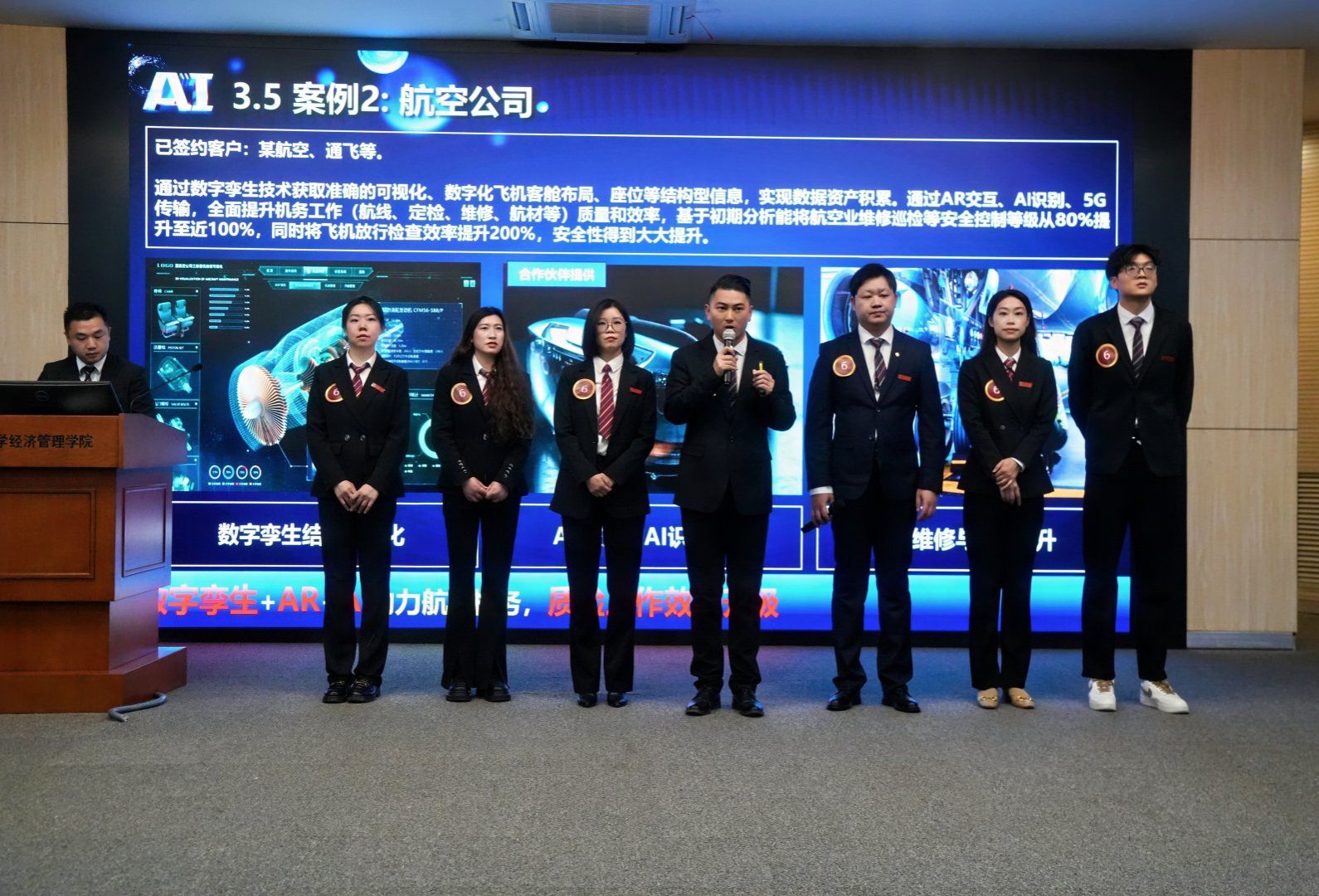 本次参与路演大赛的项目涵盖人工智能、教育服务、低空经济等前沿领域,注重技术应用与商业模式创新的有机结合,呈现出多样化的创新亮点与广阔的市场前景。现场比赛节奏紧凑、氛围热烈,各团队在项目陈述中清晰洞察用户需求、鲜明阐述价值主张;在问答环节精准把握市场定位、充分展现项目核心优势,队员们配合默契,展现出扎实的专业素养与独特的团队风采。