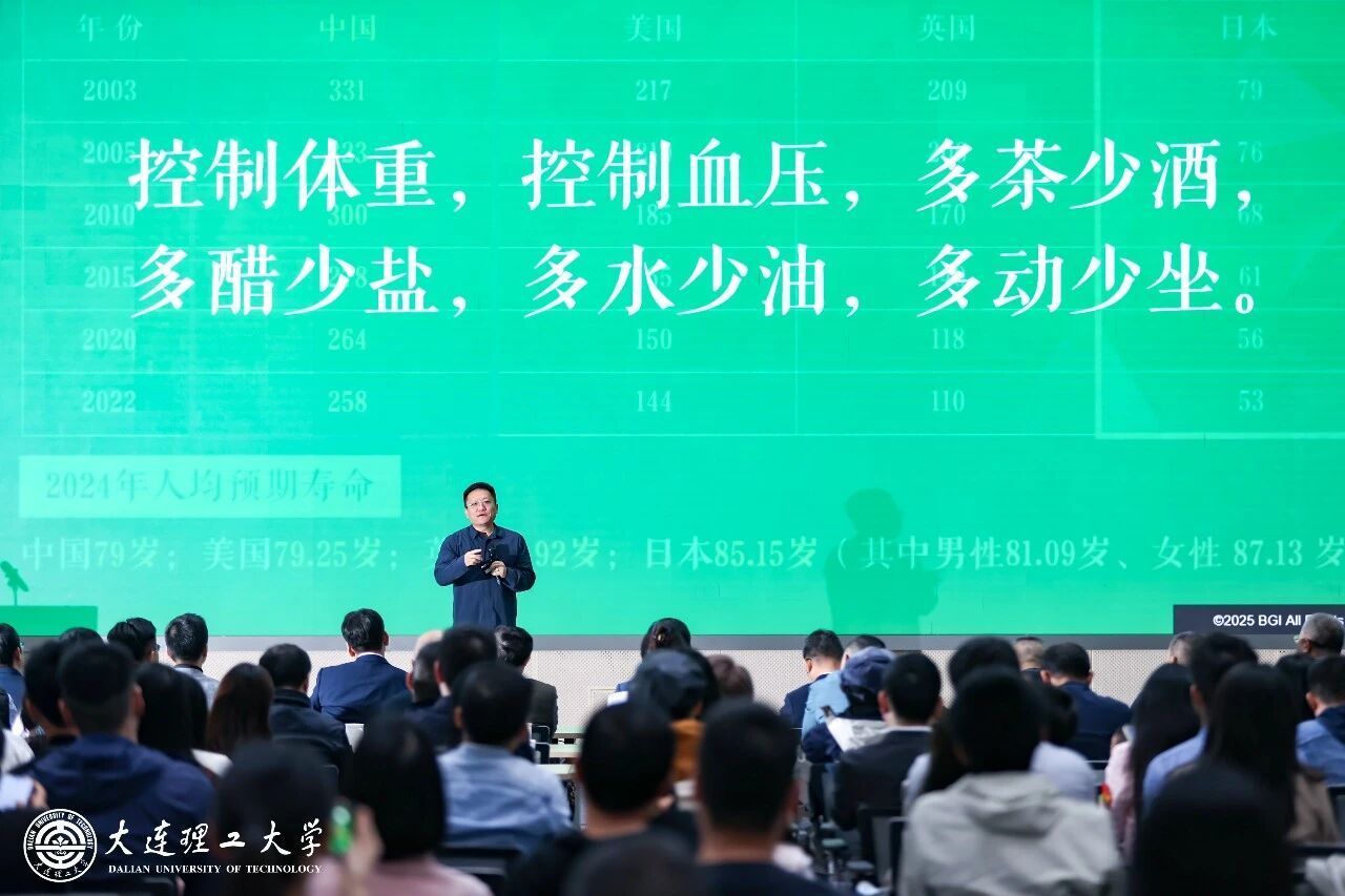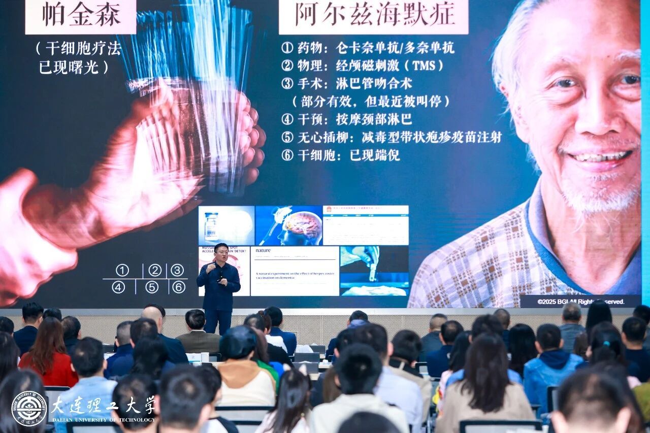华大基因首席执行官、大连理工大学校友尹烨带来专题讲座。他以“生命、健康与科技未来”为主线,凭借生动幽默的语言和详实的案例讲述,为师生们勾勒出一幅关乎人类健康、科技发展与产业创新的全景图。他指出,随着人类寿命的整体延长,主要疾病谱已逐渐转向慢性疾病,早筛早防因此成为关键。他对比分析了全球癌症防治现状,并基于华大基因在基因测序、微生物组研究、细胞治疗等领域的系列突破,深刻阐释了生物科技对疾病预防与健康管理的变革性意义。此外,他还分享了华大基因在应对帕金森、阿尔茨海默症等疾病方面的科研进展,展望了中国在生物治疗领域的全球性机遇,勉励在场听众以创新思维勇担重任、直面挑战,推动科技真正造福人类健康。