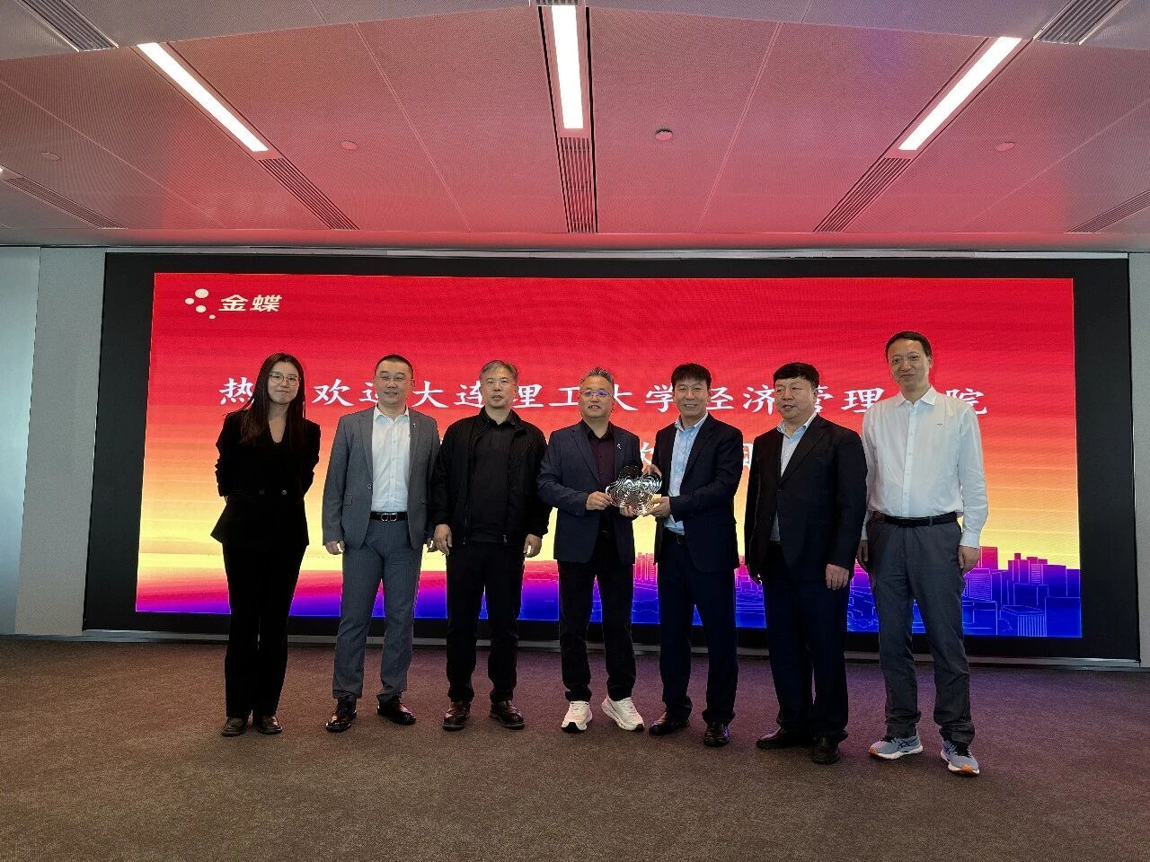 座谈交流会上,金蝶软件(中国)有限公司副总裁、市场中心总裁林法成,大连理工大学经济管理学院党委书记杨克旭,大连市计算机学会秘书长杨万青先后致辞。三方对“AI+教育”的人才培养路径达成共识,并就深化“产教融合、产学共促”教育实践表达合作意愿。现场还举行了金蝶与大连理工大学经济管理学院的纪念品交换仪式,象征着校企合作的良好开端。
